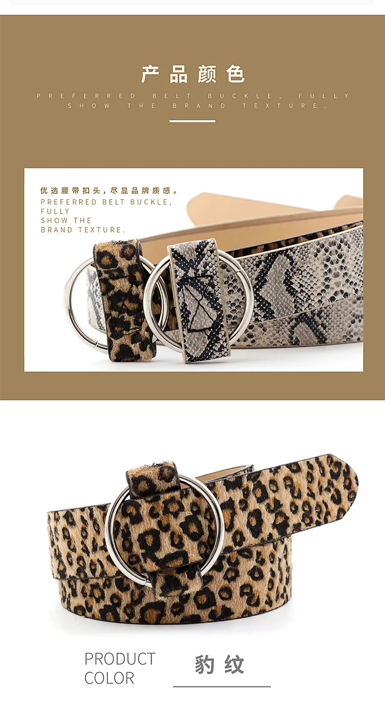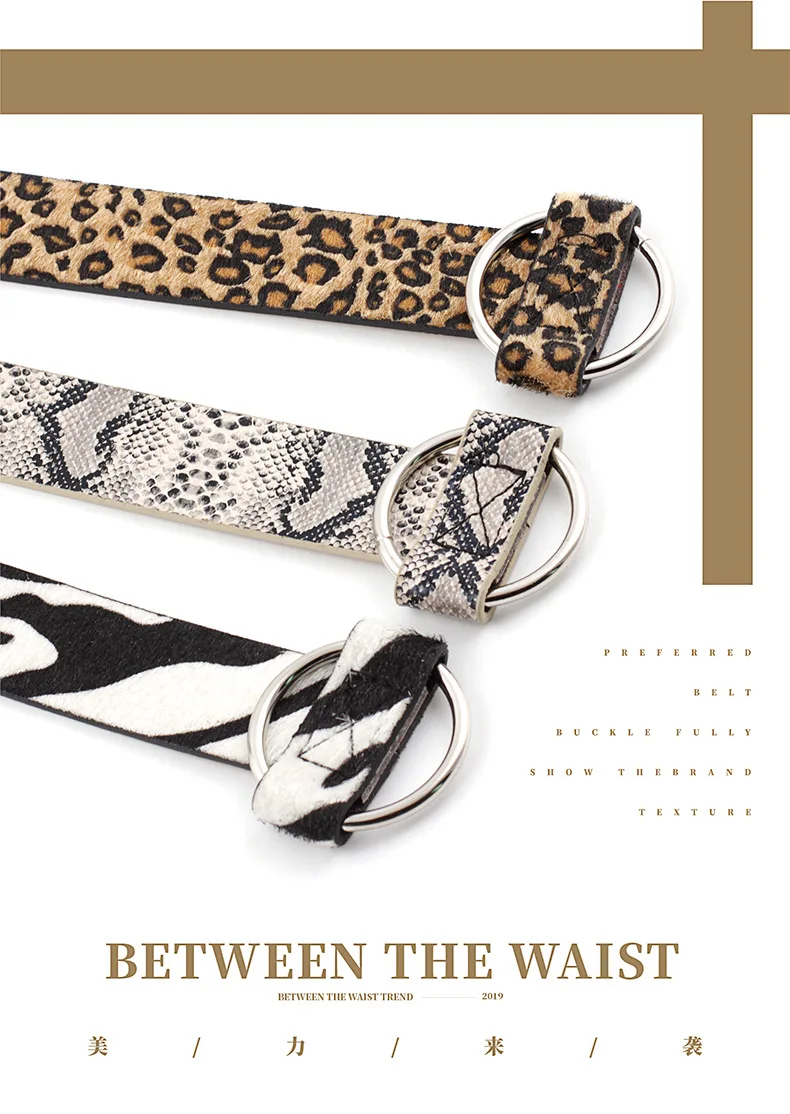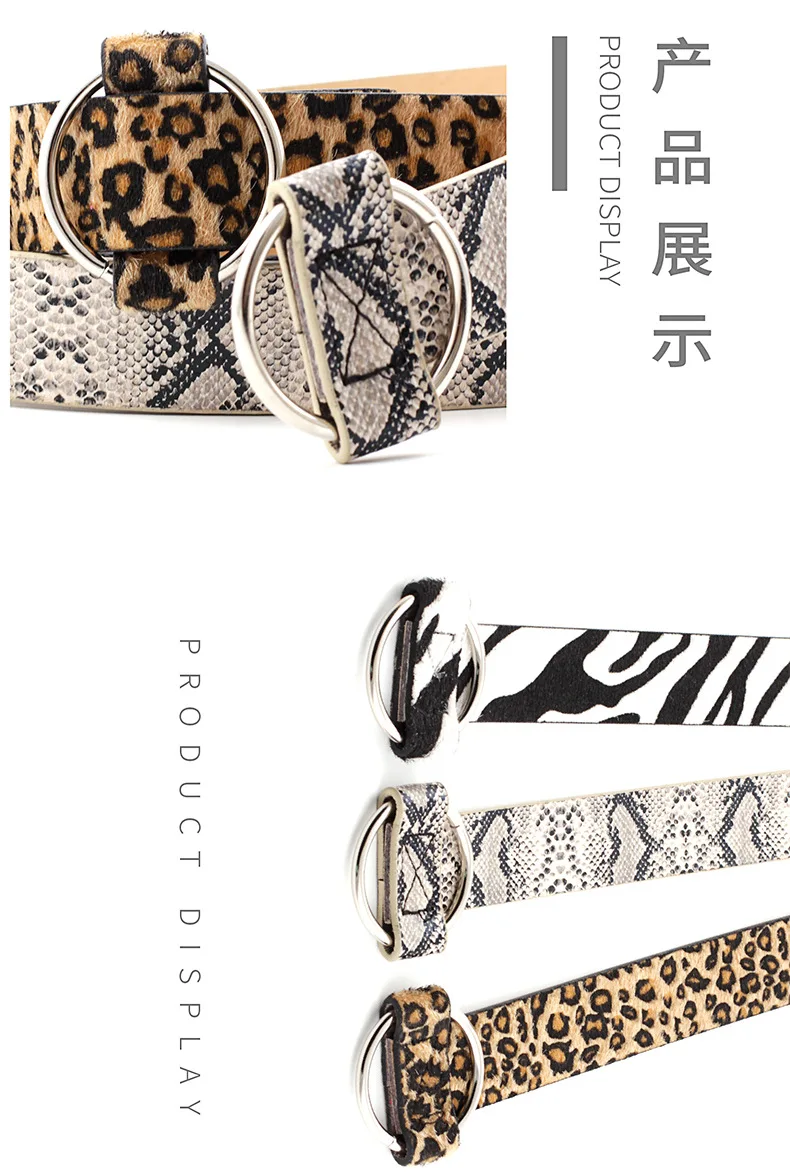 Ремень женский из искусственной кожи, Леопардовый принт, Змеиный узор, Зебра, круглая пряжка