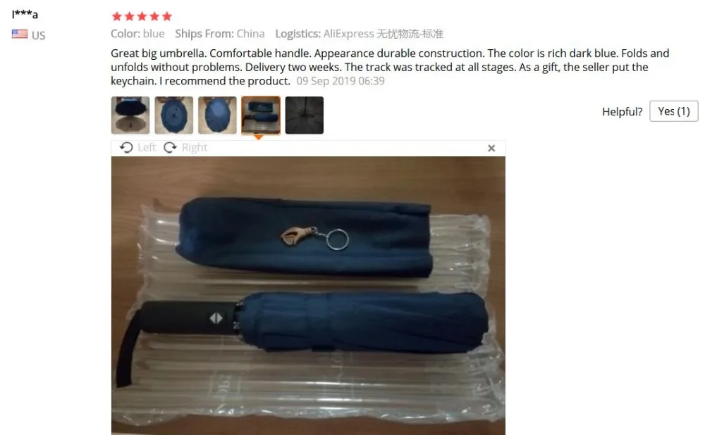 Зонт хороший, но у моего сильно болталась ручка, возможно повредился при транспортировке( но я открыла спор и продавец хоть и пытался спорить все равно вернул деньги