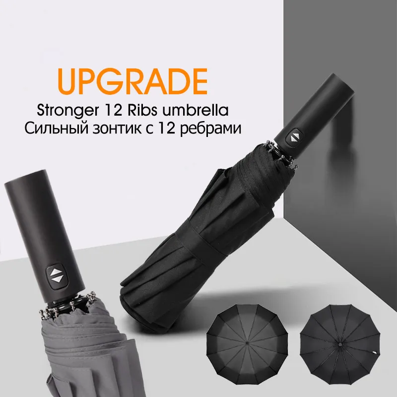 Зонт ветрозащитный 3 сложения, 12 к, для мужчин и женщин, автоматический, большой, деловой, портативный, с длинной ручкой