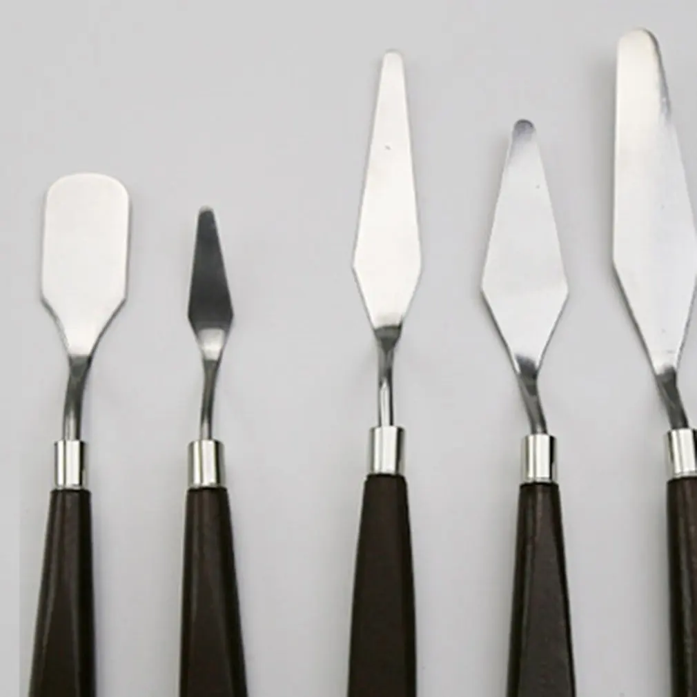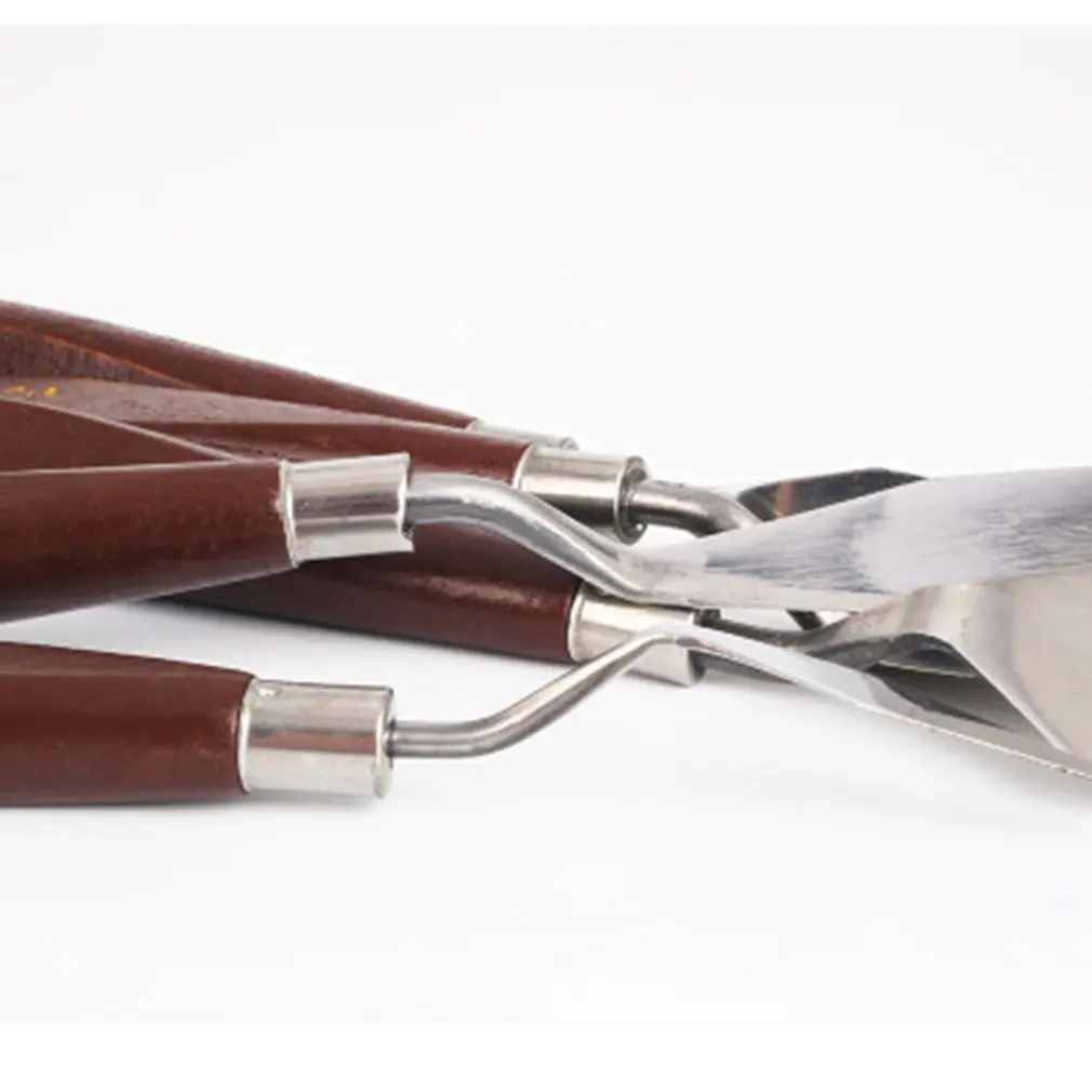 Скребок для масляной краски, 5 шт., набор с деревянной ручкой, нержавеющая сталь, инструмент для рисования, палитра, нож, лопата, инструменты для рисования