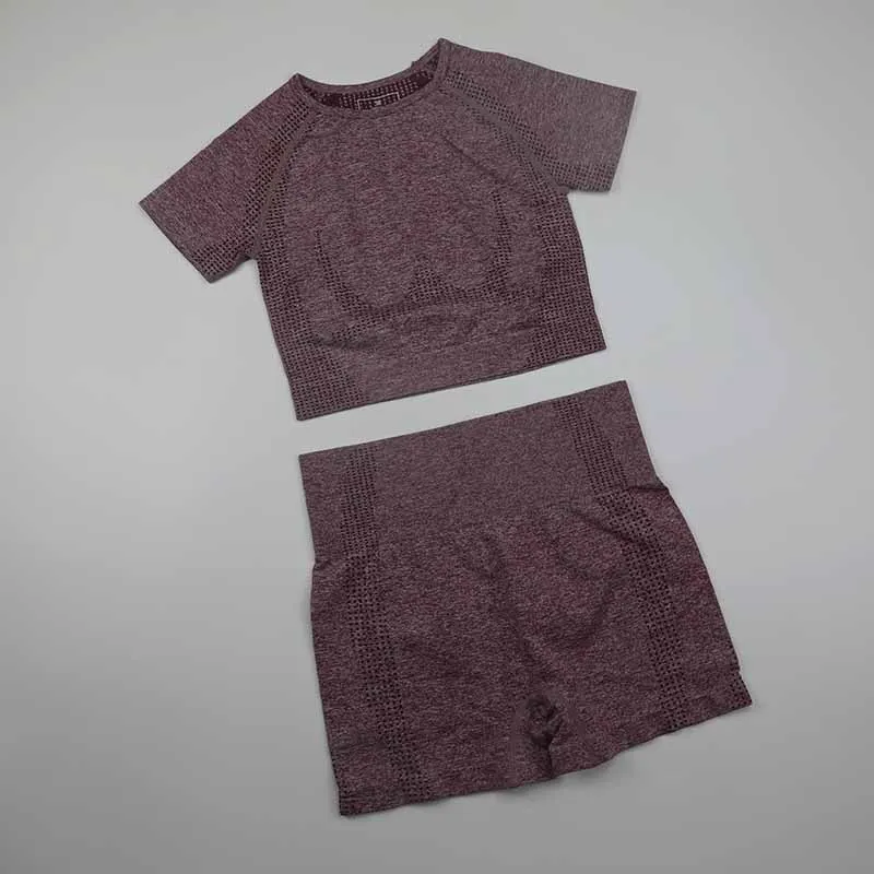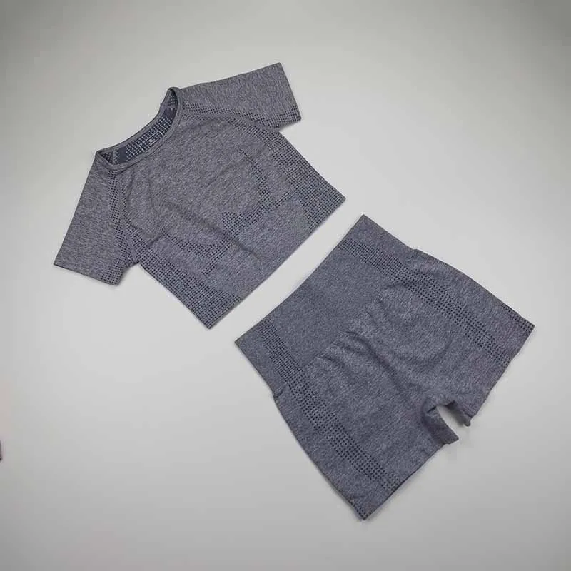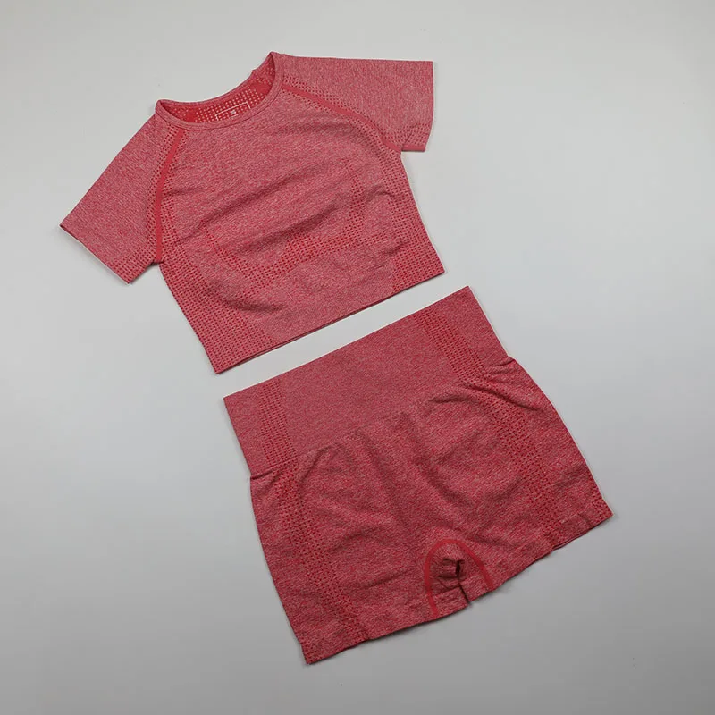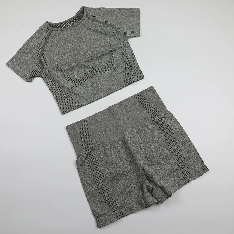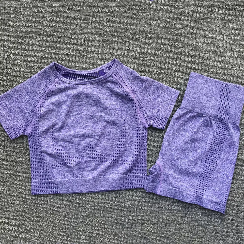 Женский бесшовный комплект для йоги, короткий топ с коротким рукавом для фитнеса, рубашки, шорты для бега, одежда для тренировок, женские комплекты для спортзала, комплект из 2 предметов