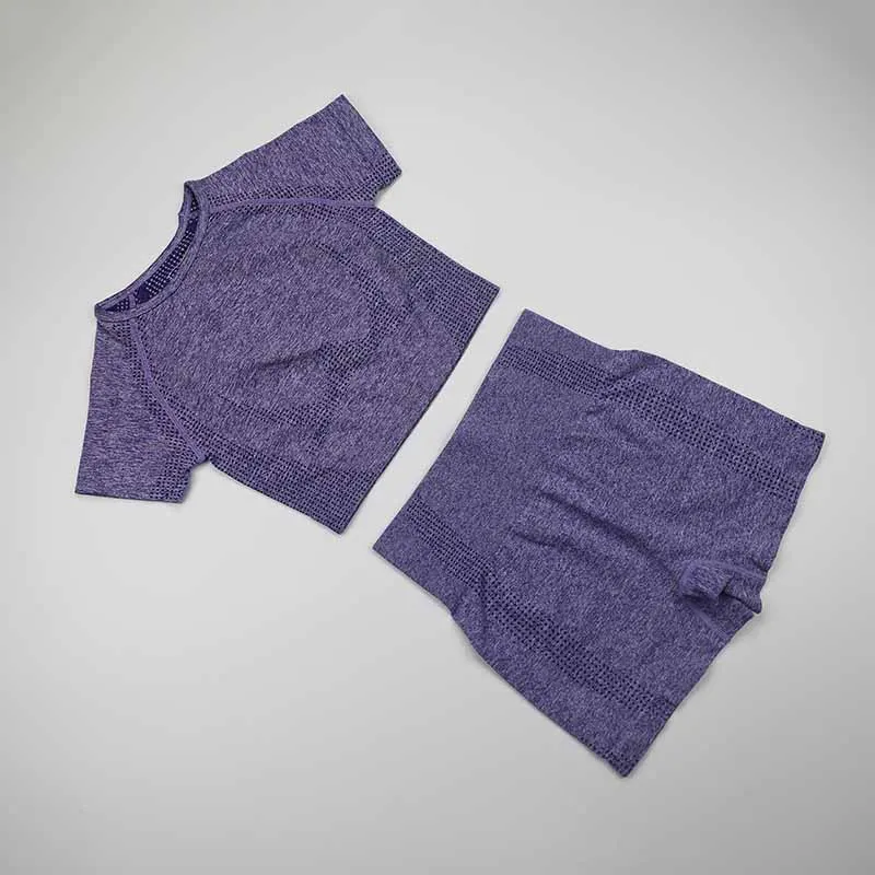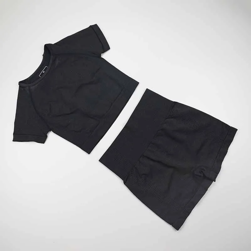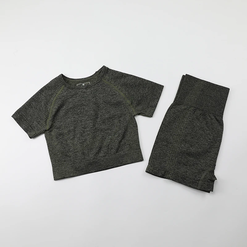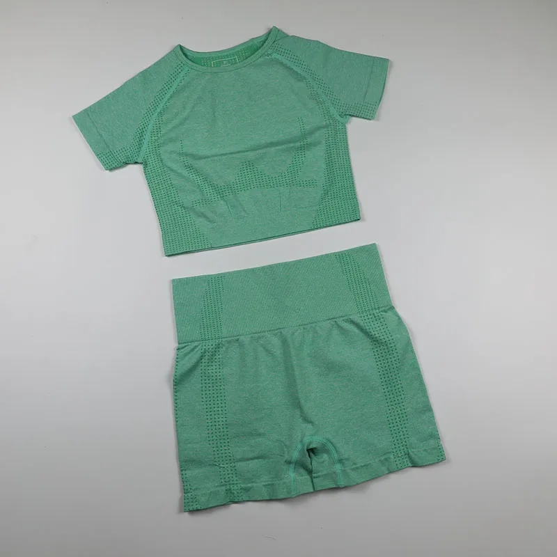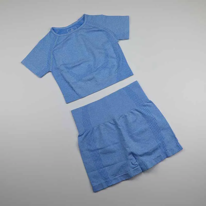 Женский бесшовный комплект для йоги, короткий топ с коротким рукавом для фитнеса, рубашки, шорты для бега, одежда для тренировок, женские комплекты для спортзала, комплект из 2 предметов