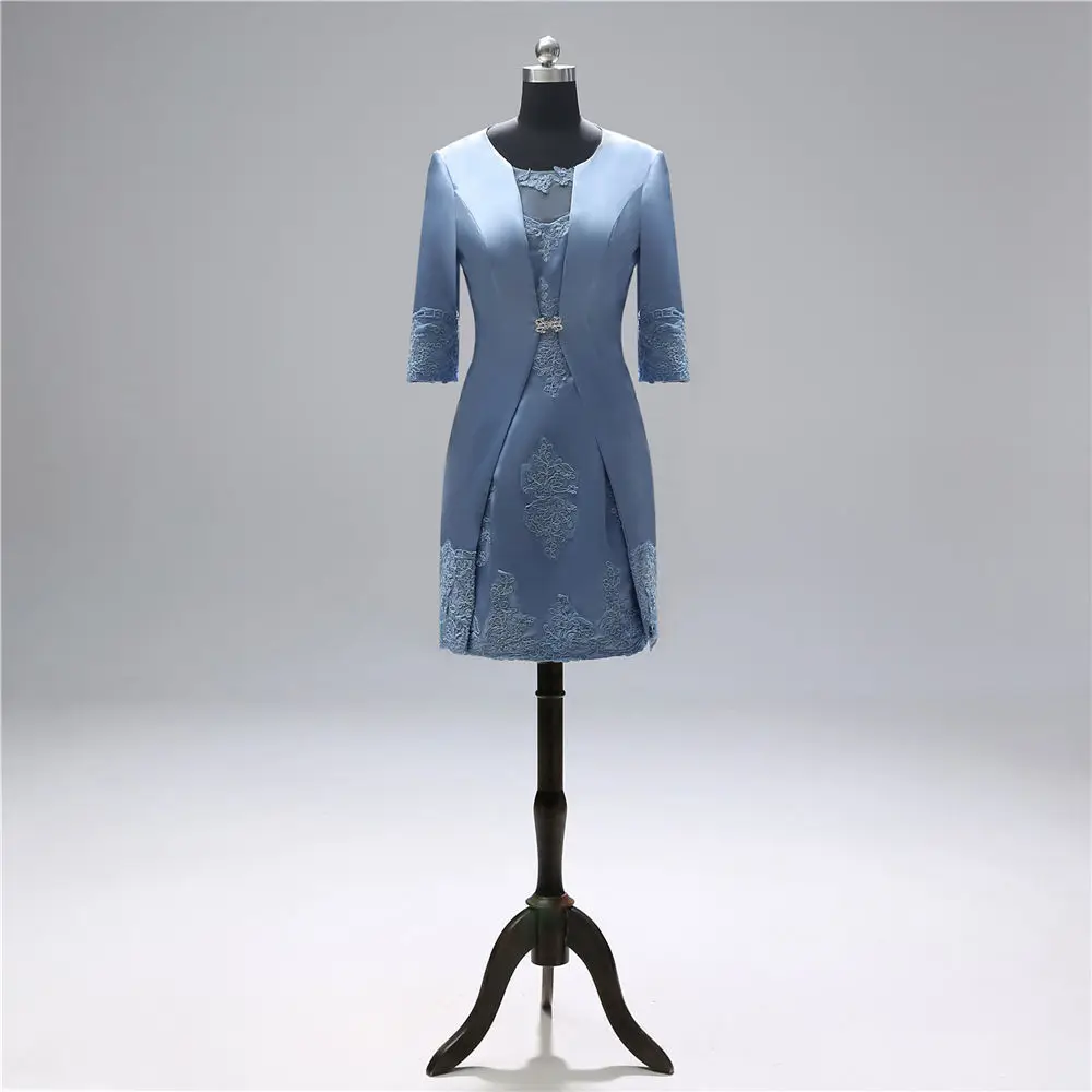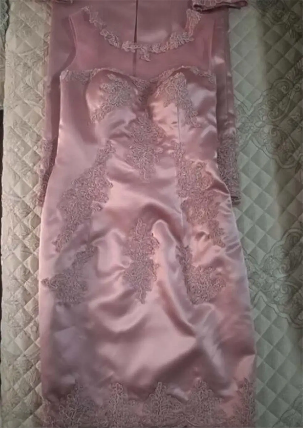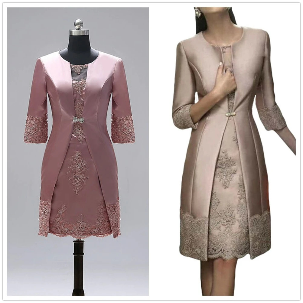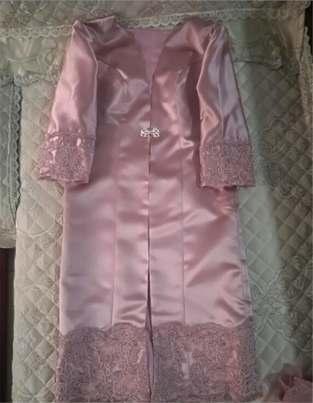 100% настоящая фотография! Винтажный костюм до колена, для мамы невесты, жениха, размера плюс, длинная куртка с аппликацией, кружевное свадебное платье для гостей
