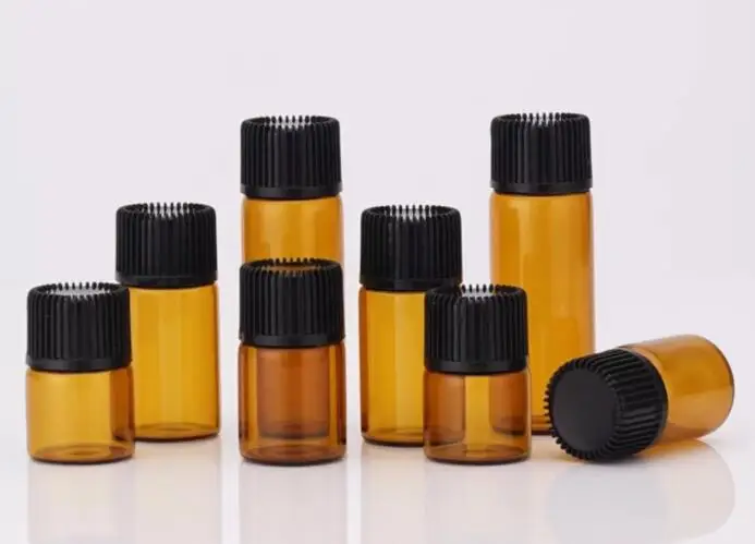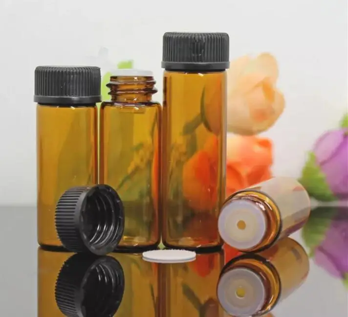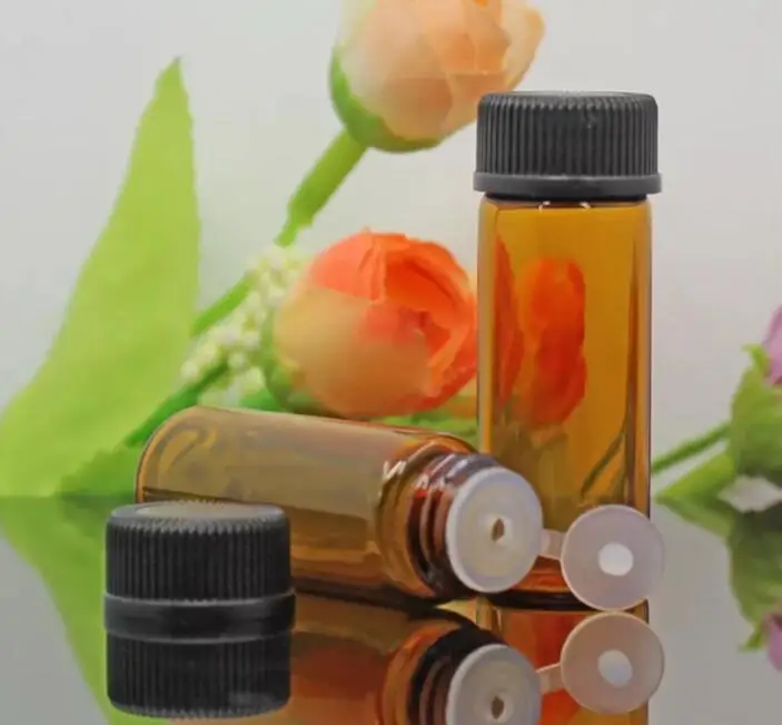100 шт. 4 мл мини флакон из янтарного стекла с редуктором с отверстием и крышкой