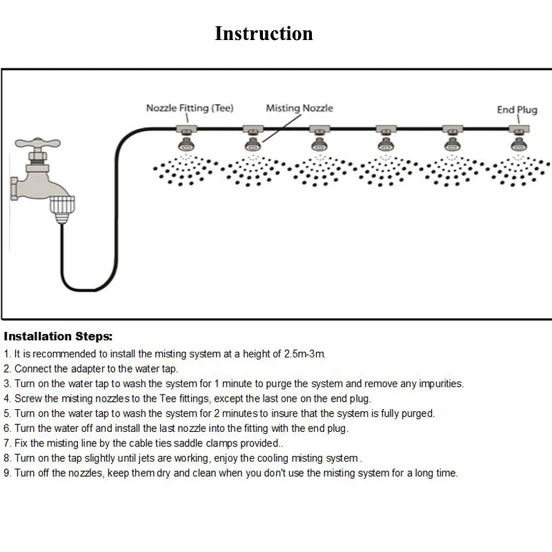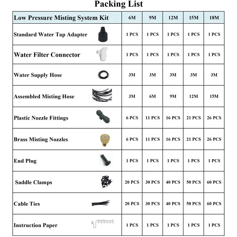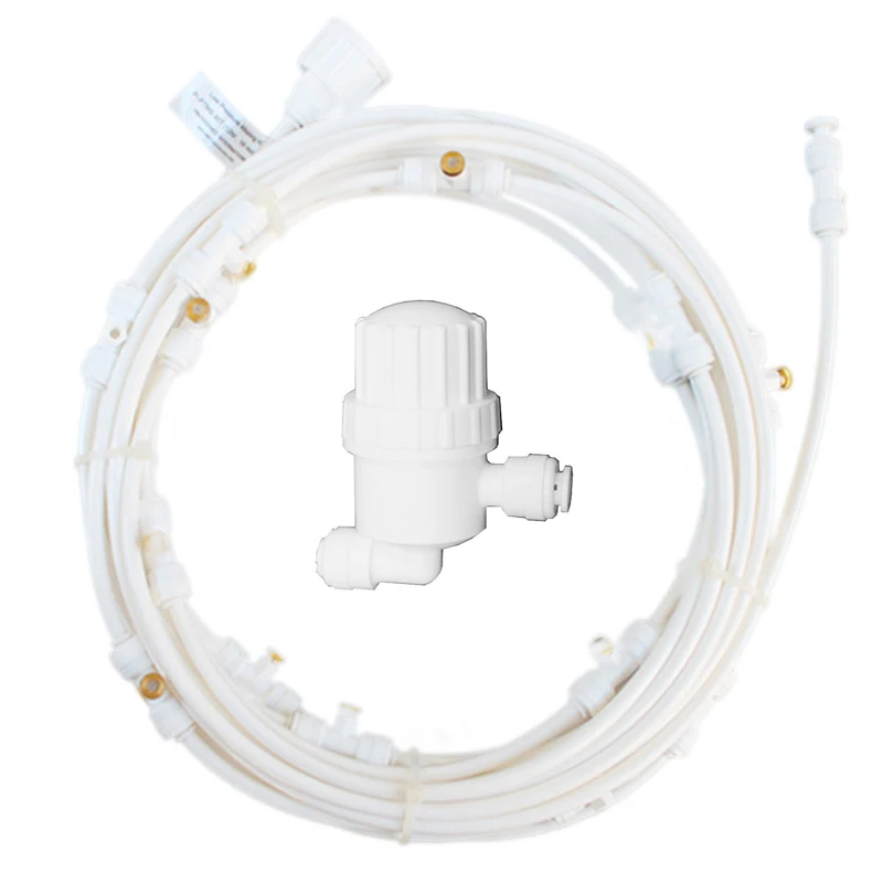 Садовый распылитель с несколькими цветами и размерами Длина 6 м/9 м/12 м/15 м/18 м Цвет: белый Насадки: 0,4 мм латунной насадки Трубка: 1/4 ''(6,35 мм) PE трубка Легко собрать и простых в использовании Запотевание для садовых и зеленых шлангов