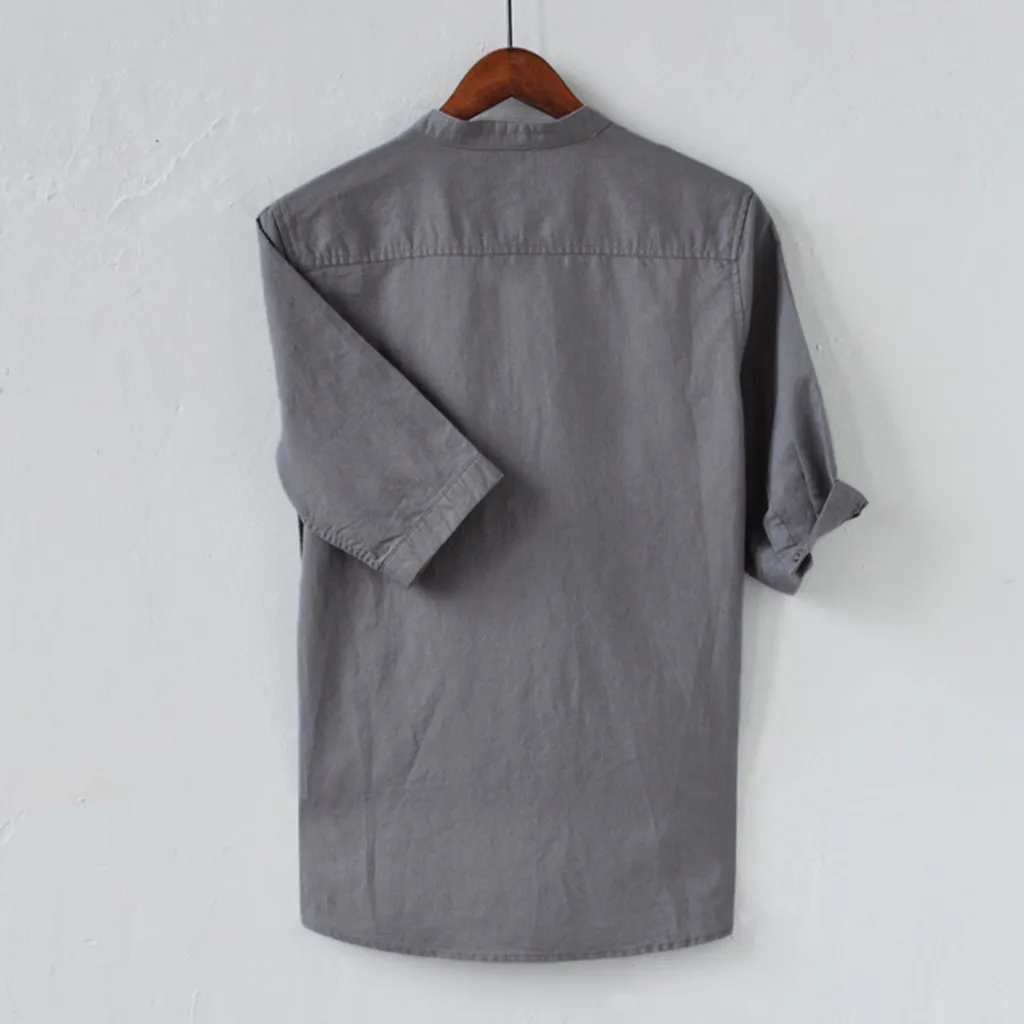 Рубашка Мужская дышащая на пуговицах, Льняная блуза из хлопка с рукавом в пять точек, однотонная, белая, лето 2020