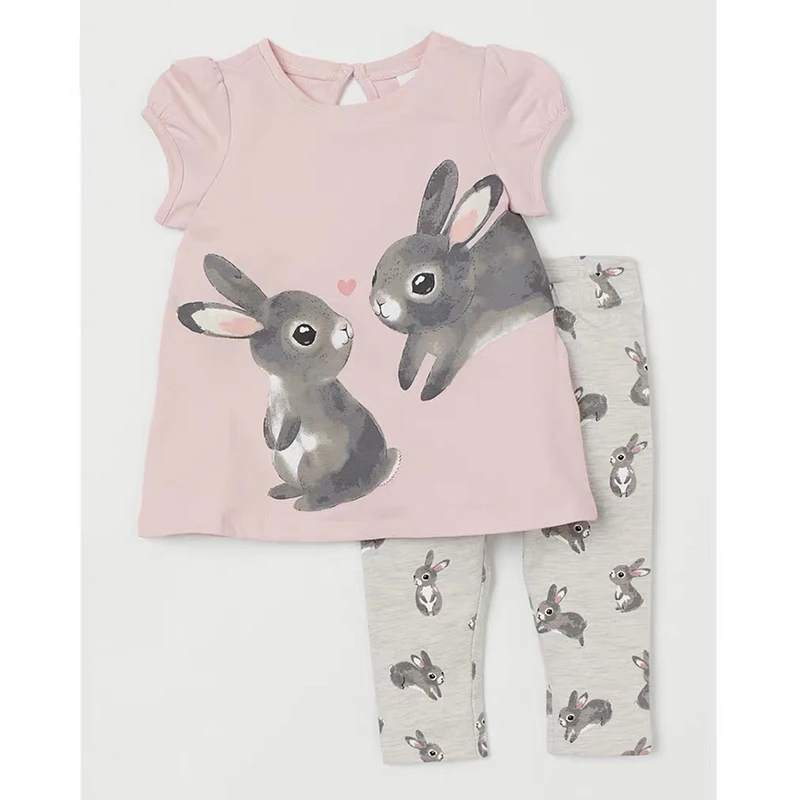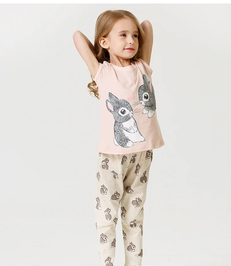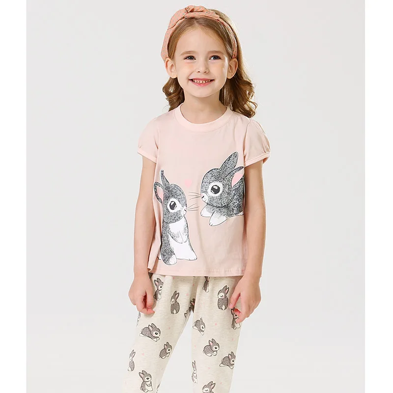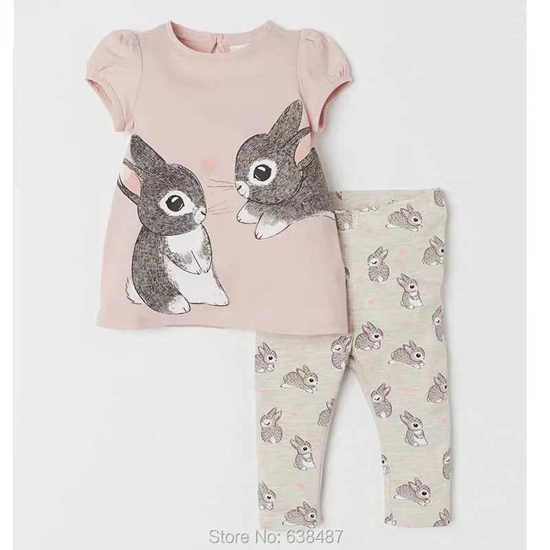 Комплекты одежды для маленьких девочек из 100% хлопка, футболка с кроликом, футболка, штаны, От 1 до 7 лет, для малышей Детские костюмы, 2021, летние наряды
