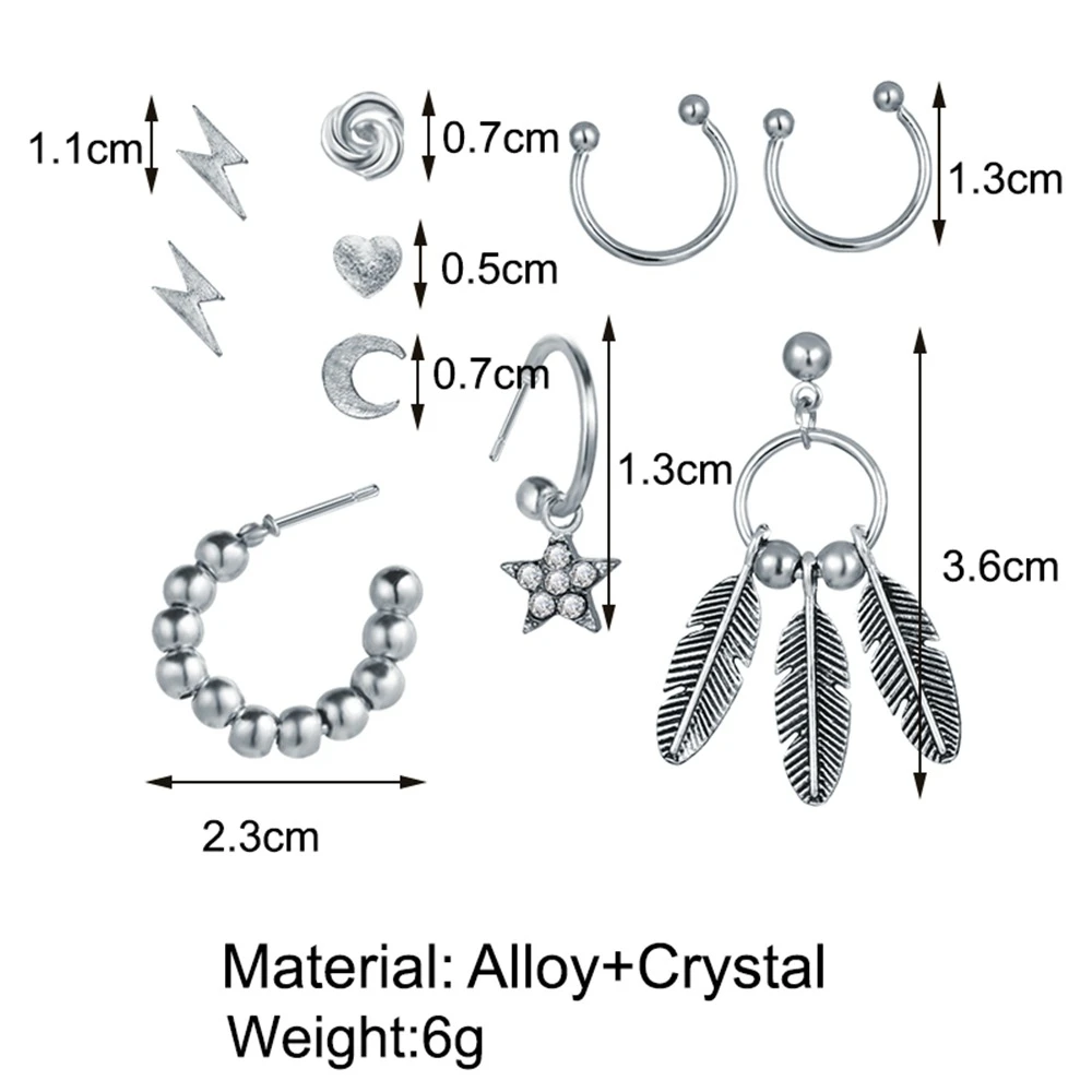 Комплект женских серег-гвоздиков в богемном стиле с кристаллами, мо...