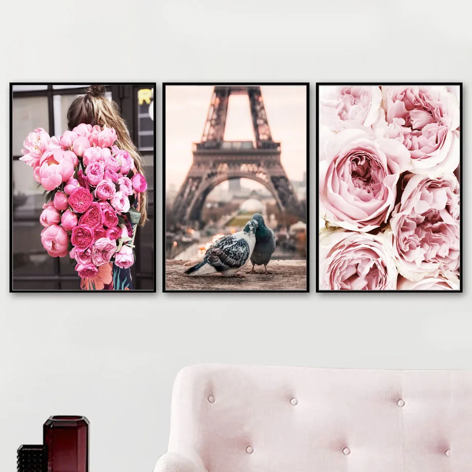 Картина на холсте с изображением розовой Парижской башни, уличных п...