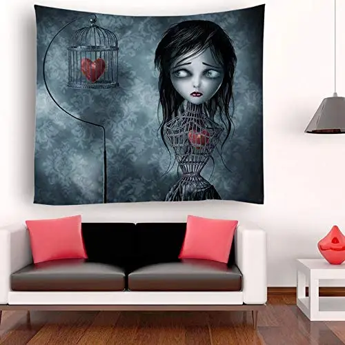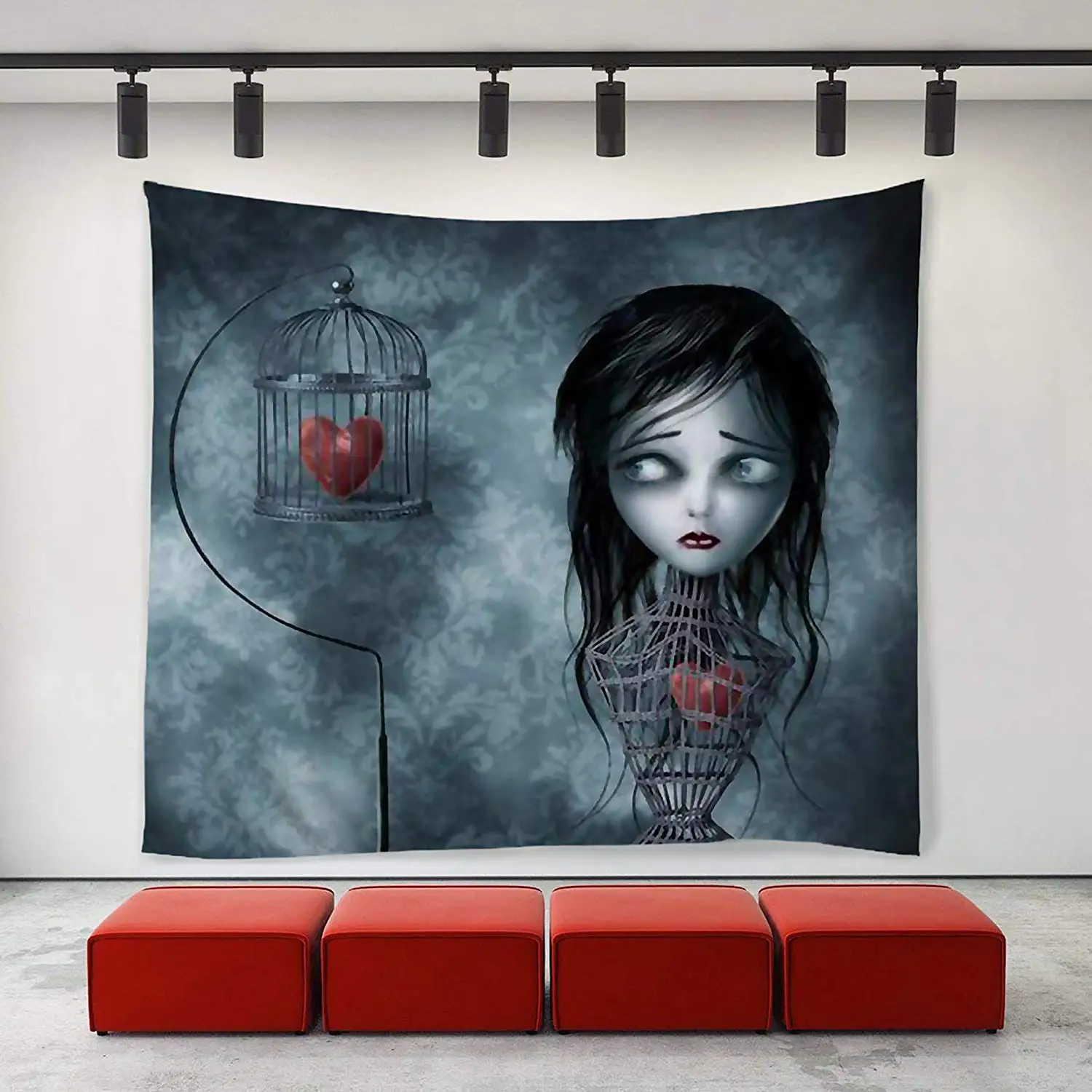 Gotik Готический для женщин Девушка клетка любовь гобелены стены Искусство хиппи спальня гостиная