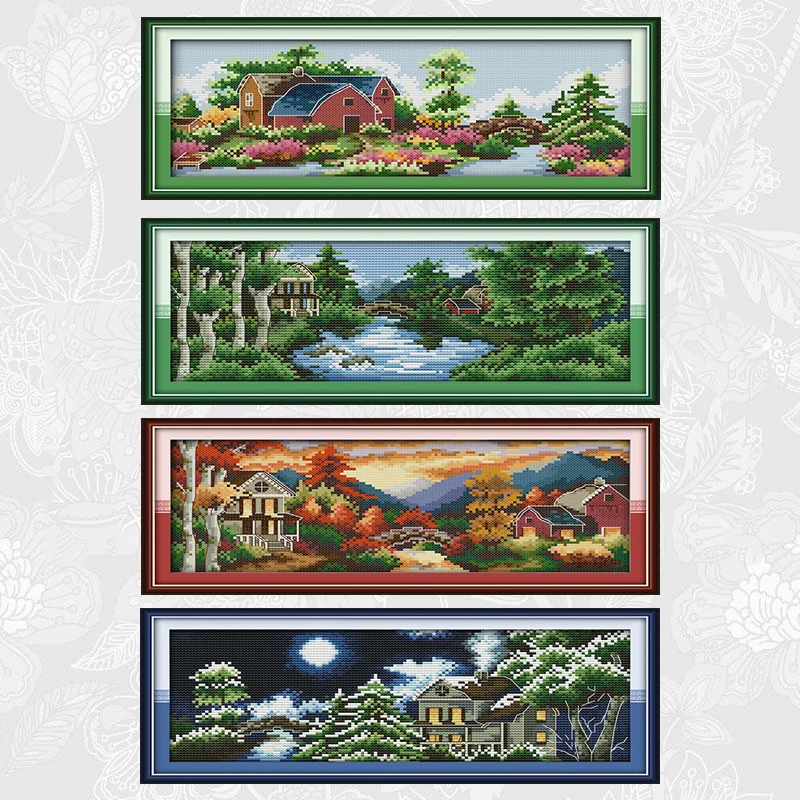 Joy Sunday Four Seasons Волшебные рисунки для домиков Aida вышивка крестиком набор для рукоделия аксессуары для дома украшение