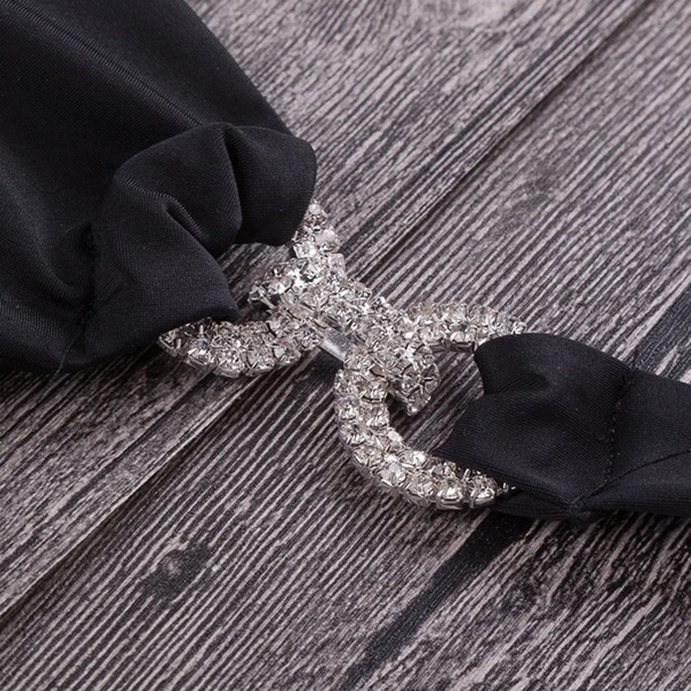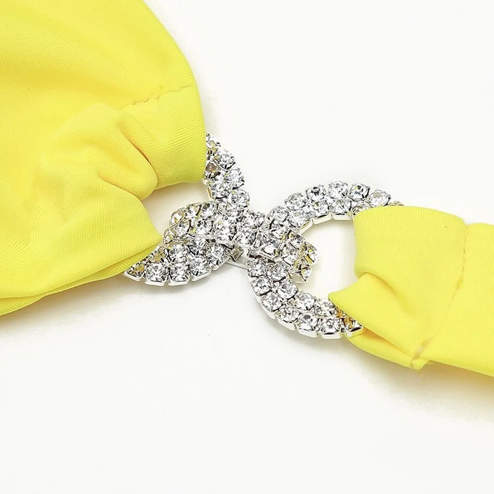 Комплект бикини женский, 2 шт., однотонный, с завязками на шее, стразы, круглая застежка, 2020