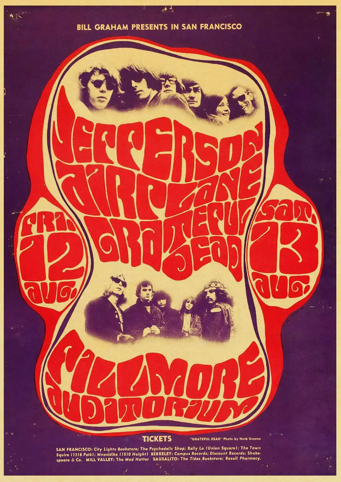 Винтажные плакаты Grateful Dead, наклейки на стену, Ретро плакат с ...