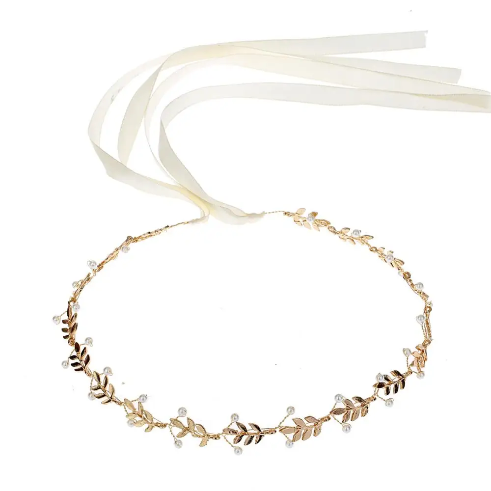 Лента с золотыми листьями, свадебные аксессуары для волос, повязка на голову с искусственным жемчугом, свадебная лоза, обруч для волос, головной убор для невесты, женские Украшения