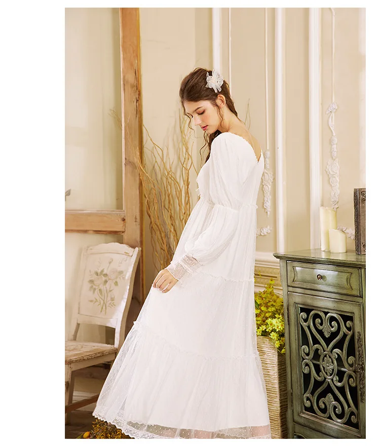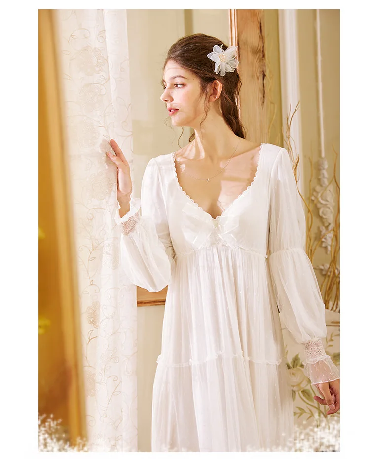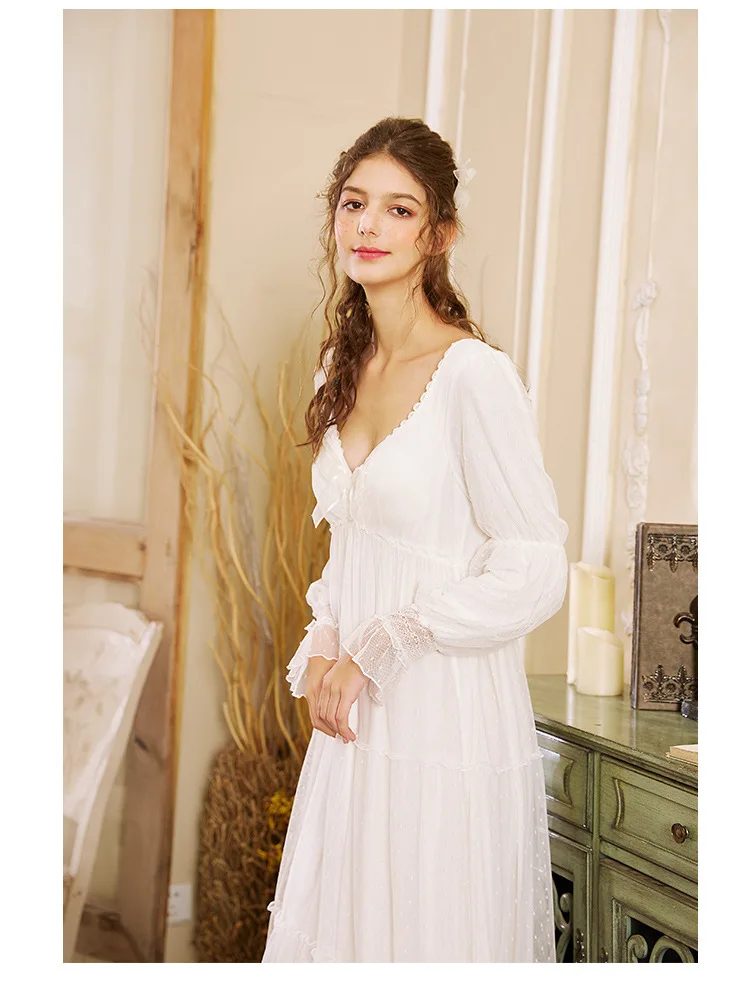 Ночная рубашка женская, с длинным рукавом, для сна и отдыха, белая, милая, симпатичная ночная рубашка