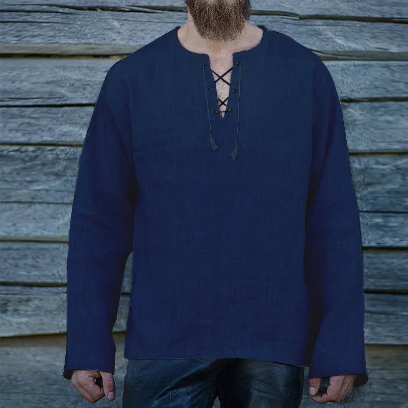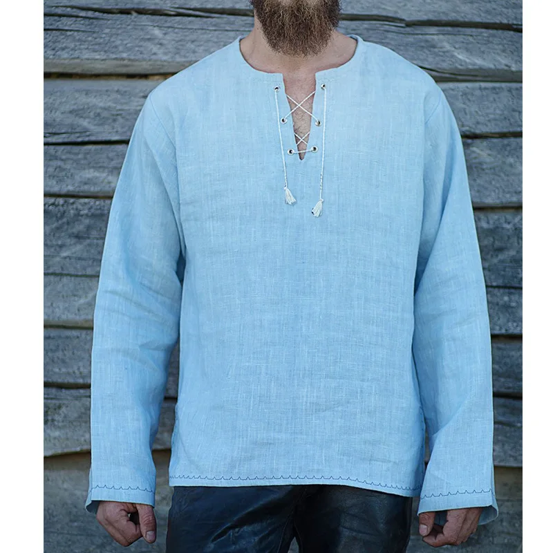 Мужские Viking пирата; Футболка с длинными рукавами и средневековые для косплея Бандажное платье с v-образным вырезом; Льняная дышащая Ranger рыцарские сапоги в стиле ретро; Одежда