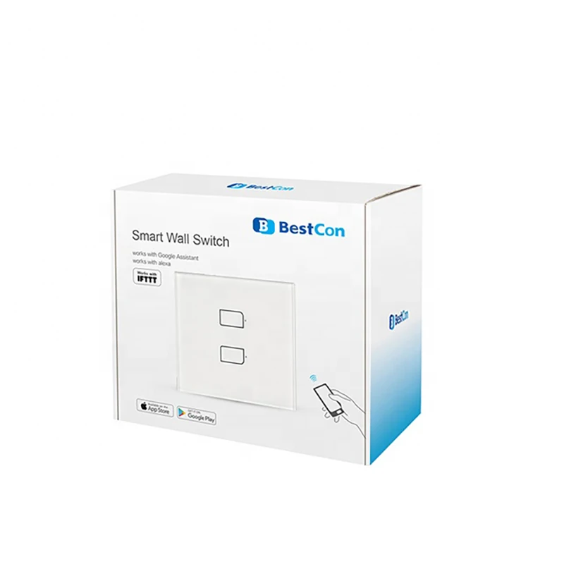 Однополюсный умный настенный выключатель BroadLink BestCon TC2S 3GANG RF стандарта Великобритании, голосовое управление Alexa Google Assistant
