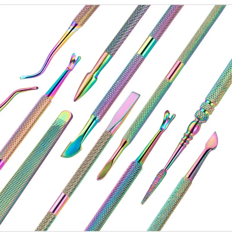 11 стилей Радуга из нержавеющей стали отодвигание кутикулы для ногтей пинцет ногти АРТ пилки УФ Гель-лак удаление маникюра Уход Чистый инструмент FY229
