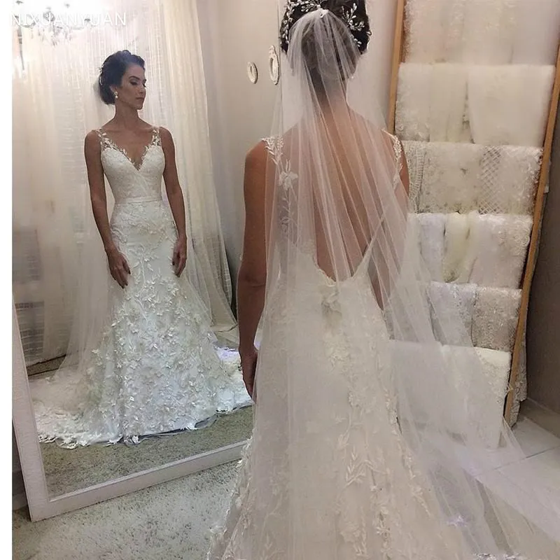 Кружевная Длинная свадебная фата 1T, с аппликацией, с гребнем, свад...