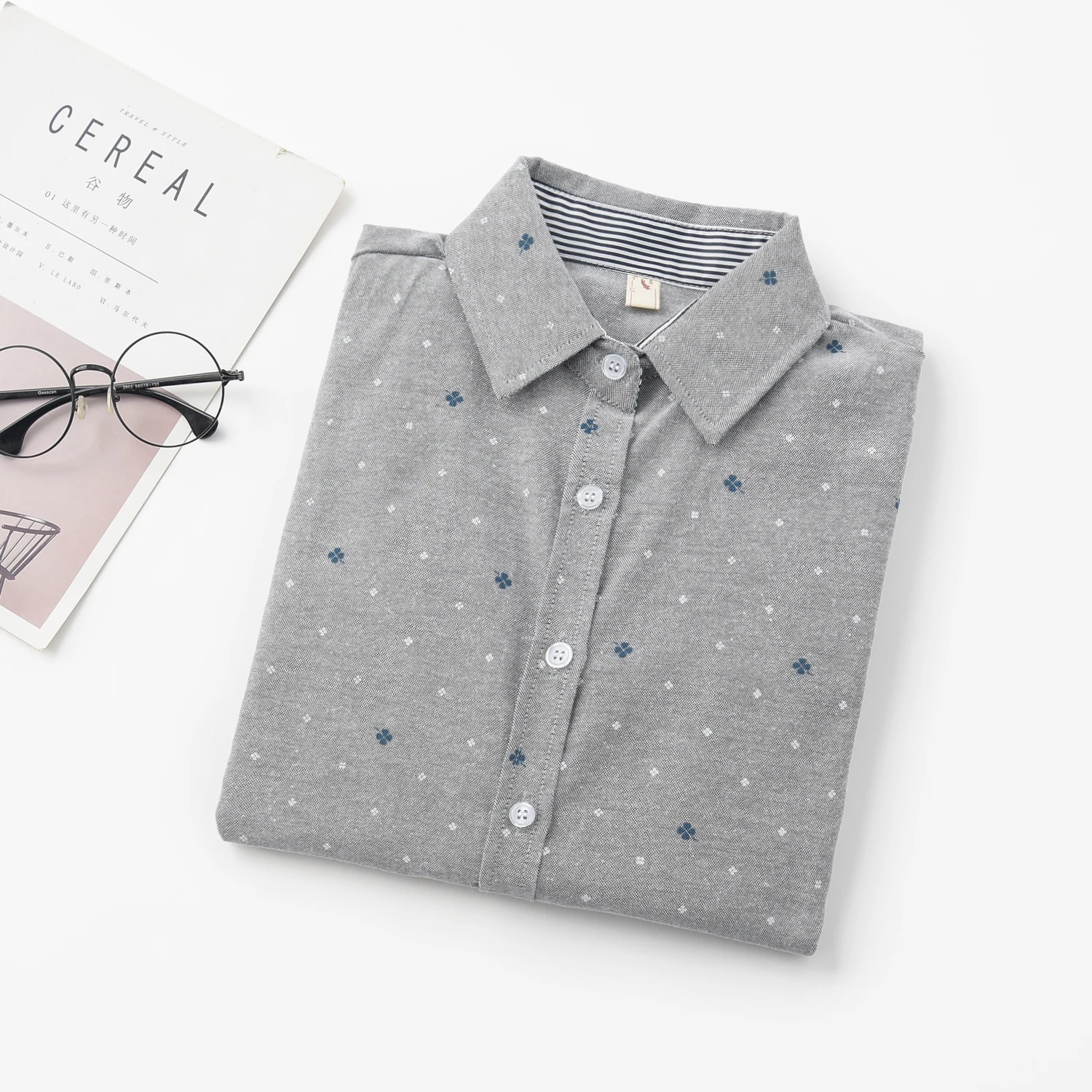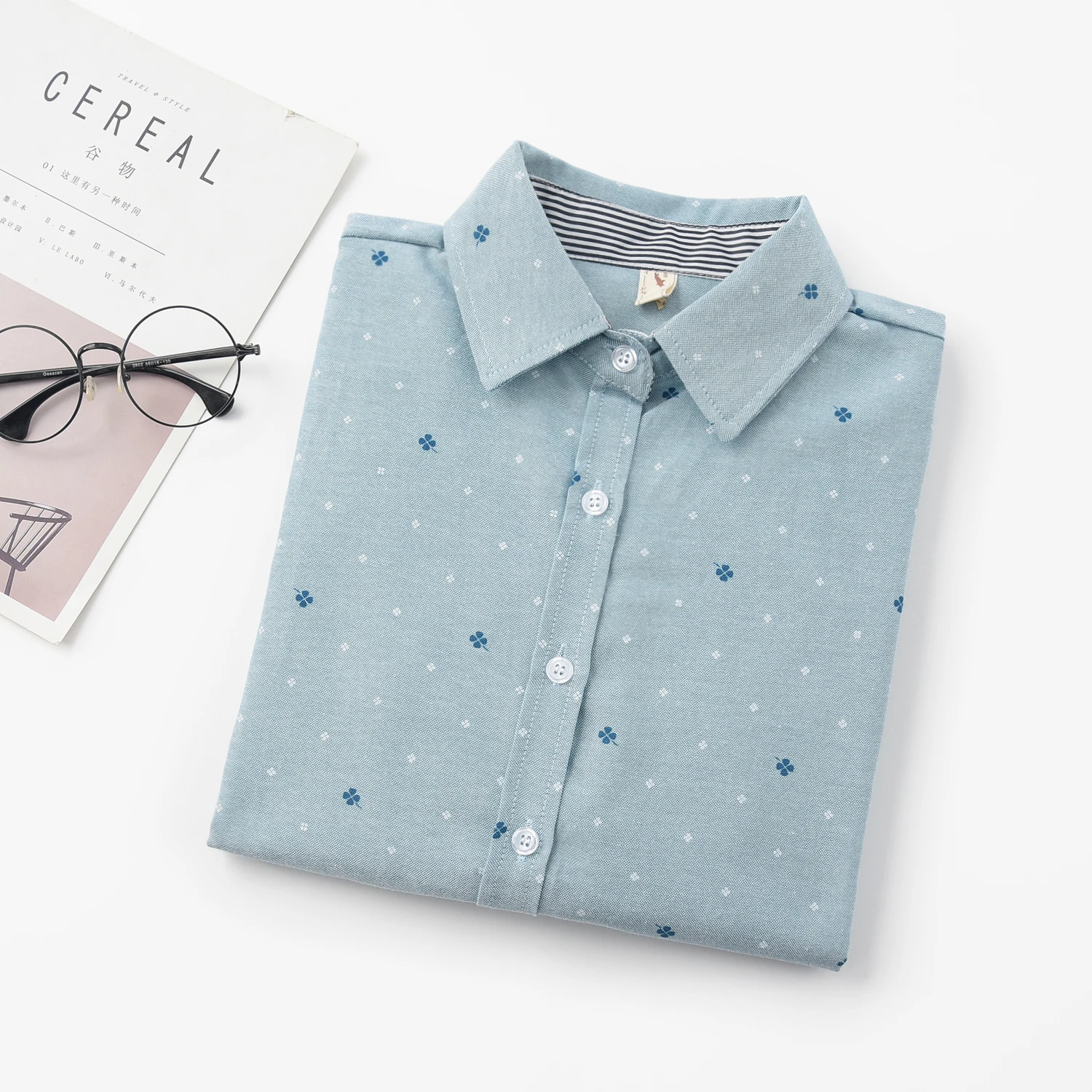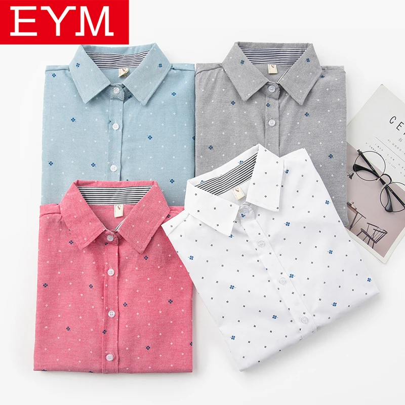 Брендовая женская блузка EYM, новинка весны 2021, Повседневная рубашка с длинным рукавом и принтом, новые женские блузки в колледжском стиле, топы, женская одежда, блузы