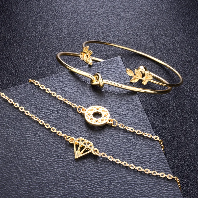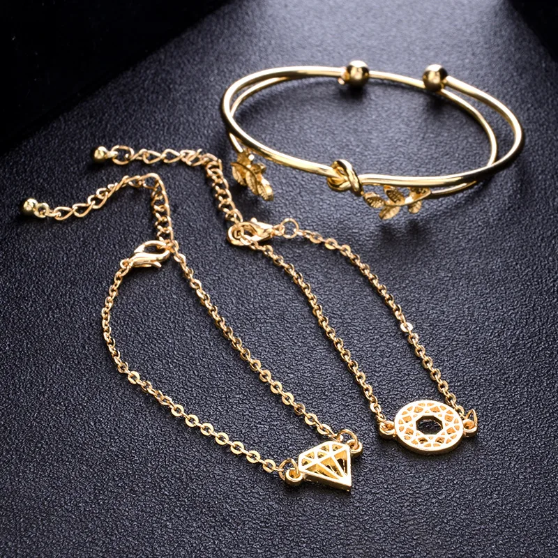 Женский браслет из нержавеющей стали с листьями и кристаллами