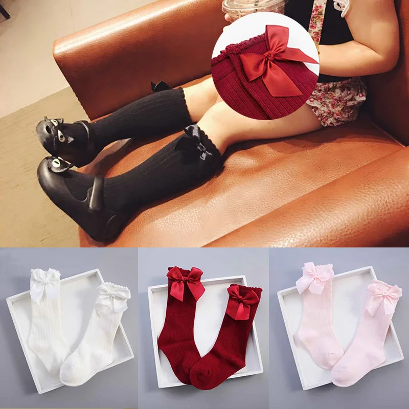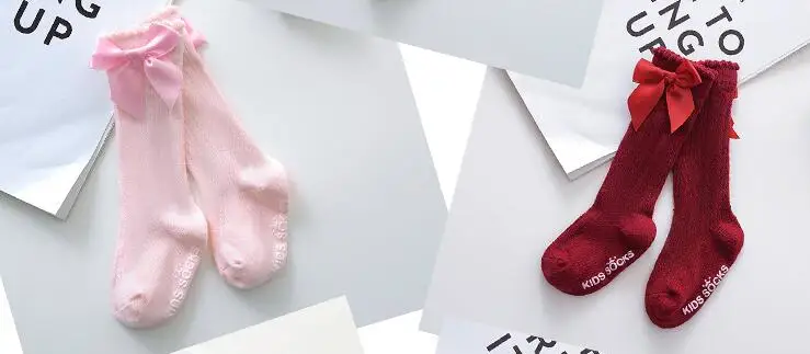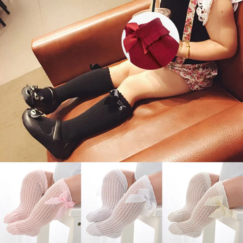 Носки для девочек, Нескользящие длинные гольфы с бантиками, Детские теплые носки принцессы для девочек, детские сетчатые носки, Calcetines Meias