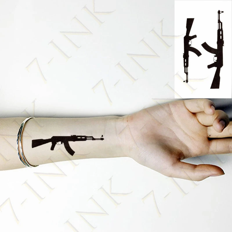 Водостойкая временная татуировка наклейка Submachine AK47 сексуальный пистолет черное слово Ангел тату боди-арт флеш искусственные татуировки для мужчин женщин