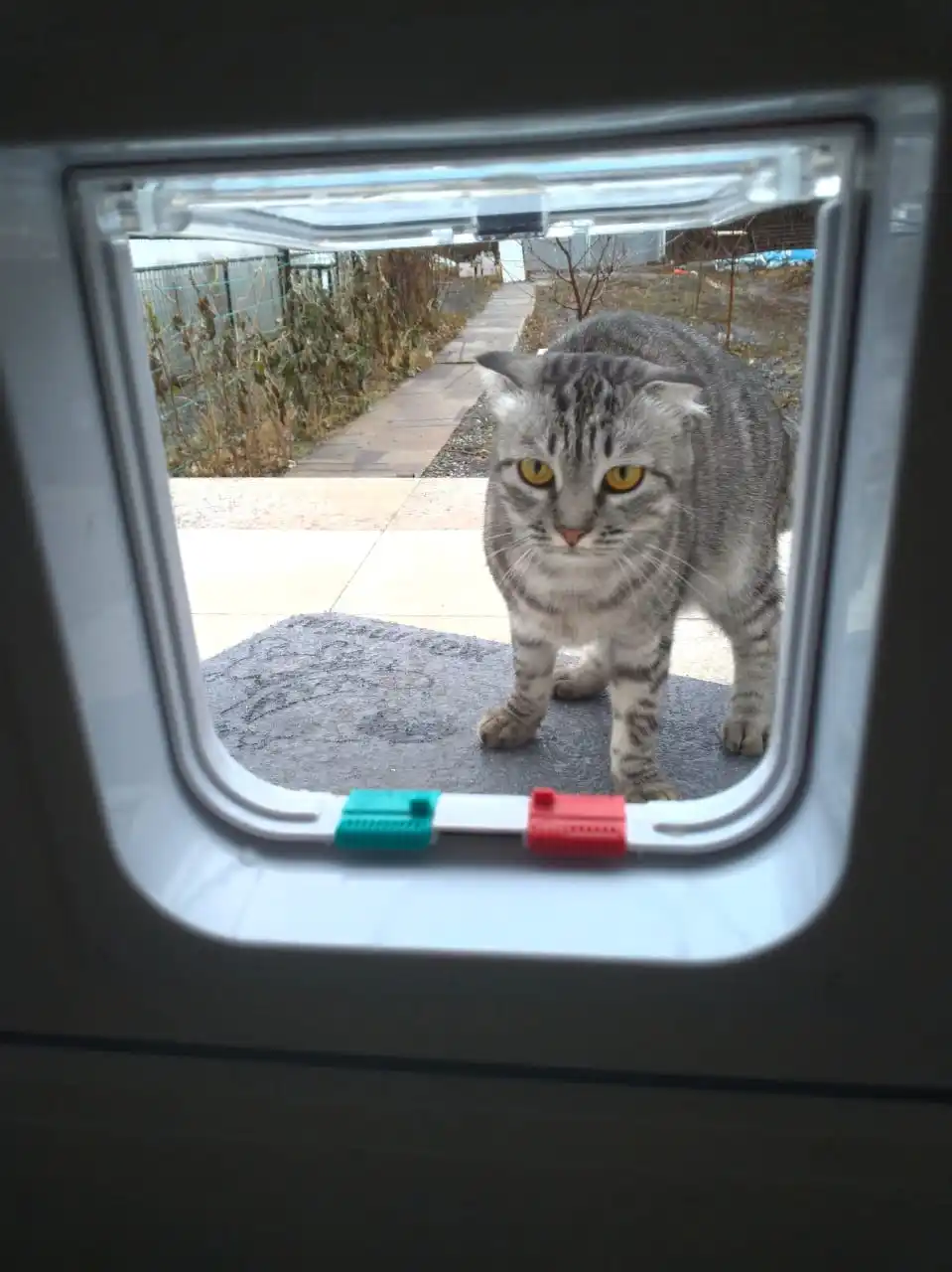 Спасибо, мой друг, за эту прекрасную дверь для кота! Кот счастлив! Дверь работает как написано. В комплекте нержавеющий крепеж. Выглядит красиво!