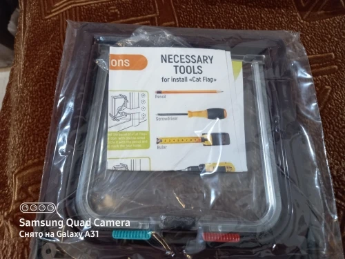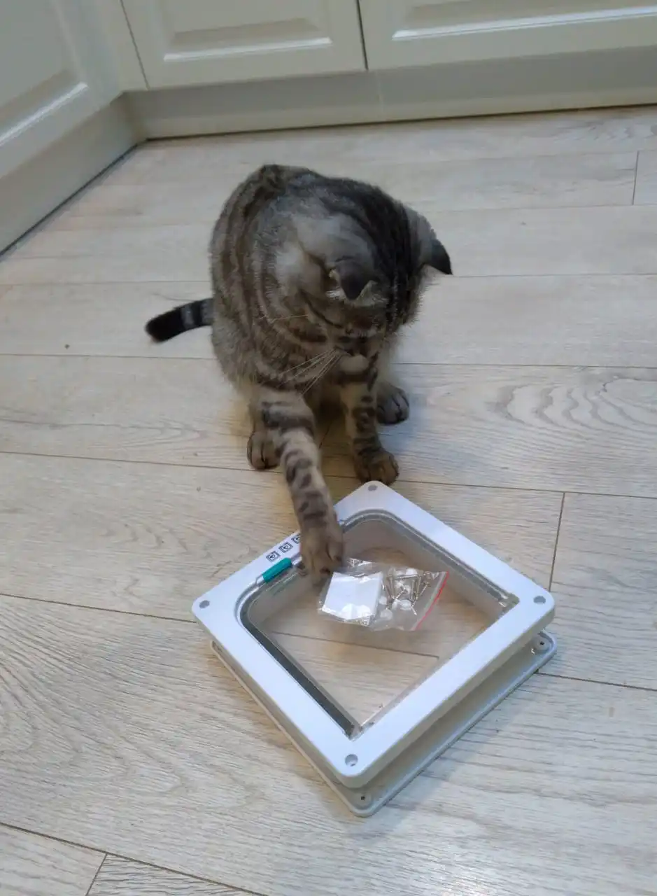 Заказ пришёл в срок, чуть больше двух недель. Упакован хорошо, всё цело. Дверцы отличные. Установка заняла около часа. Кот уже в процессе установки очень заинтересовался. Установили сразу две дверцы. В туалет, там лоток, и в ванной, там у кота еда. Теперь не нужно постоянно открывать коту двери. Всё довольны.