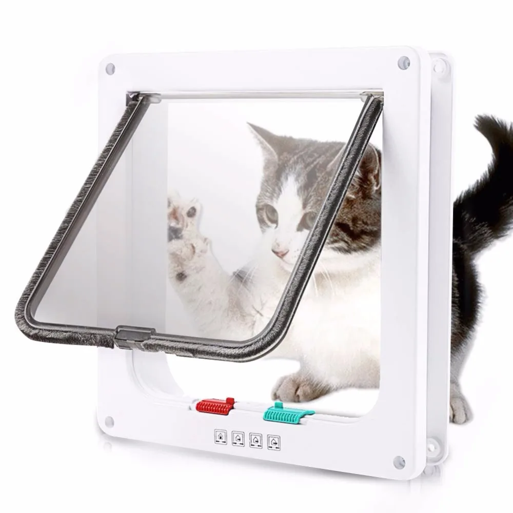 Откидная дверь для собак, кошек, с 4-сторонним замком безопасности, откидная дверь для собак, кошек, котят, небольшие ворота из АБС-пластика, комплект дверей для кошек, собак, откидные двери