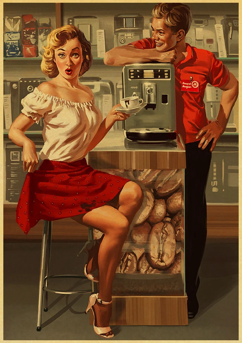 Кофе ретро постер винтажный плакаты и принты бар кофе кухня гостина...