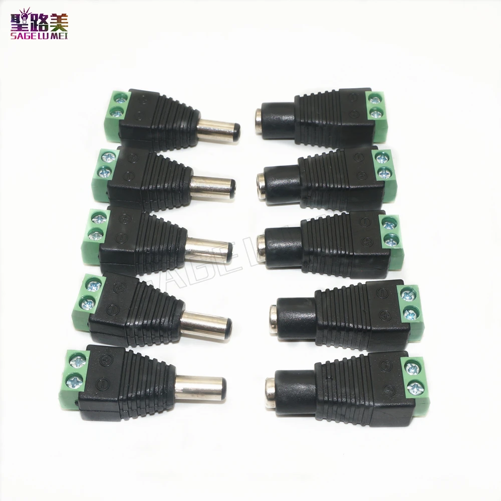 2,1*5,5 мм, 5 шт., женский + 5 шт., штекер постоянного тока, разъем питания, переходник, кабельный разъем для светодиодной ленсветильник 3528/5050/5730