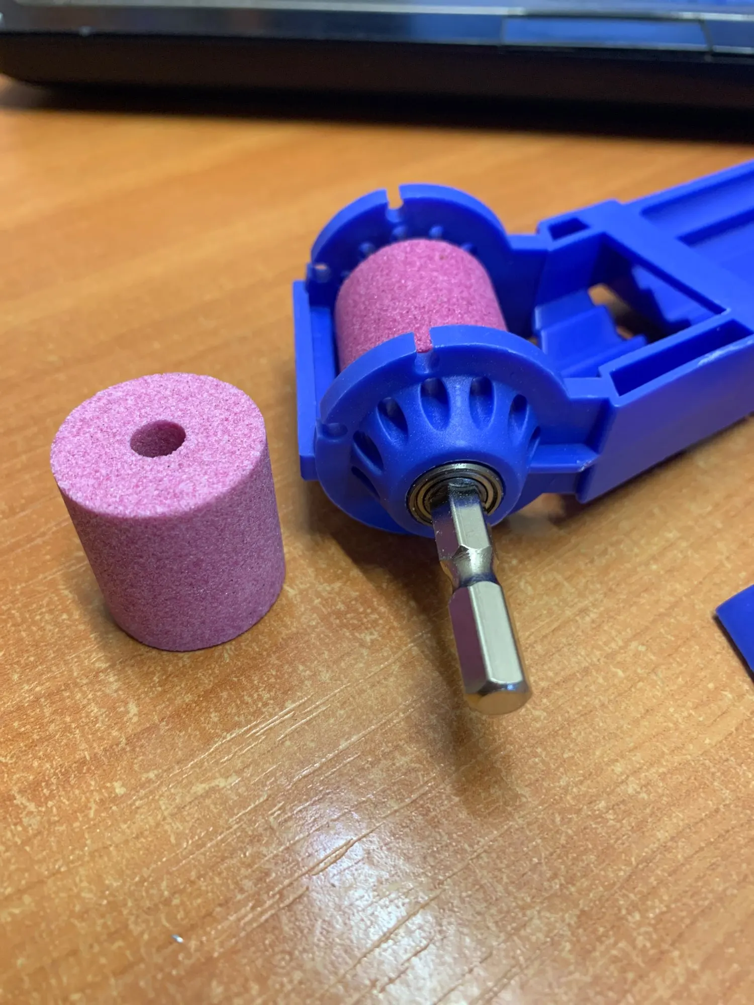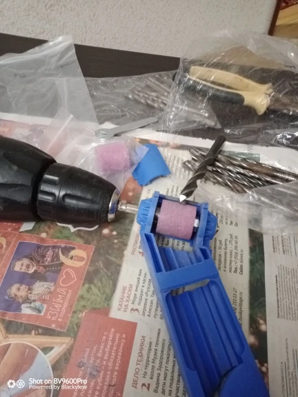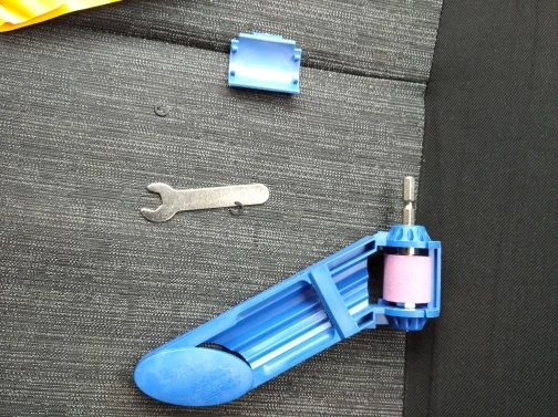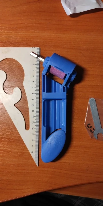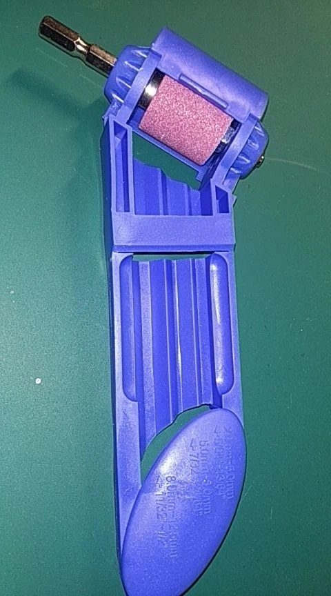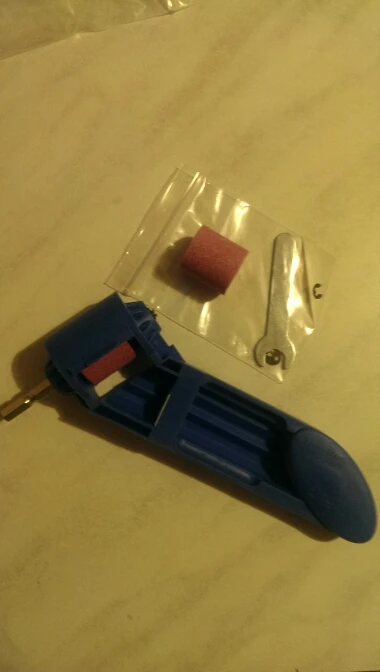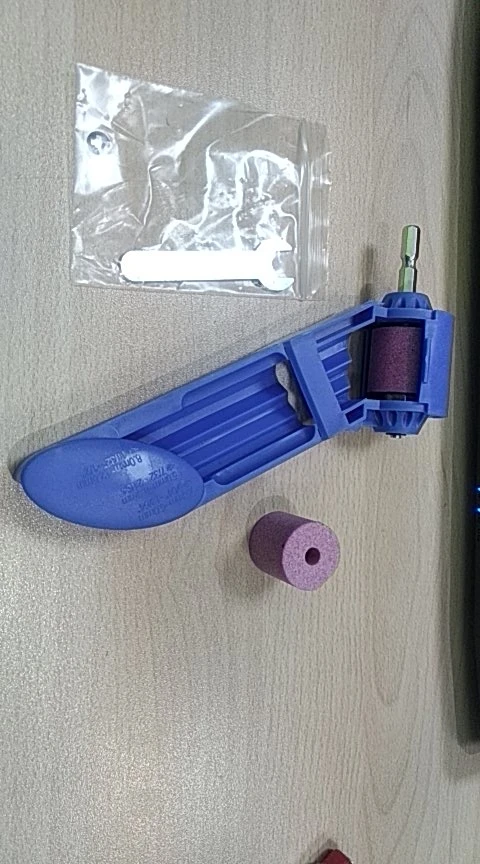 Камни хорошие, точат быстро. Маленькие и короткие сверла не удобно держать. Срезал на ручке верхнюю перемычку, без неё удобней держать сверло.