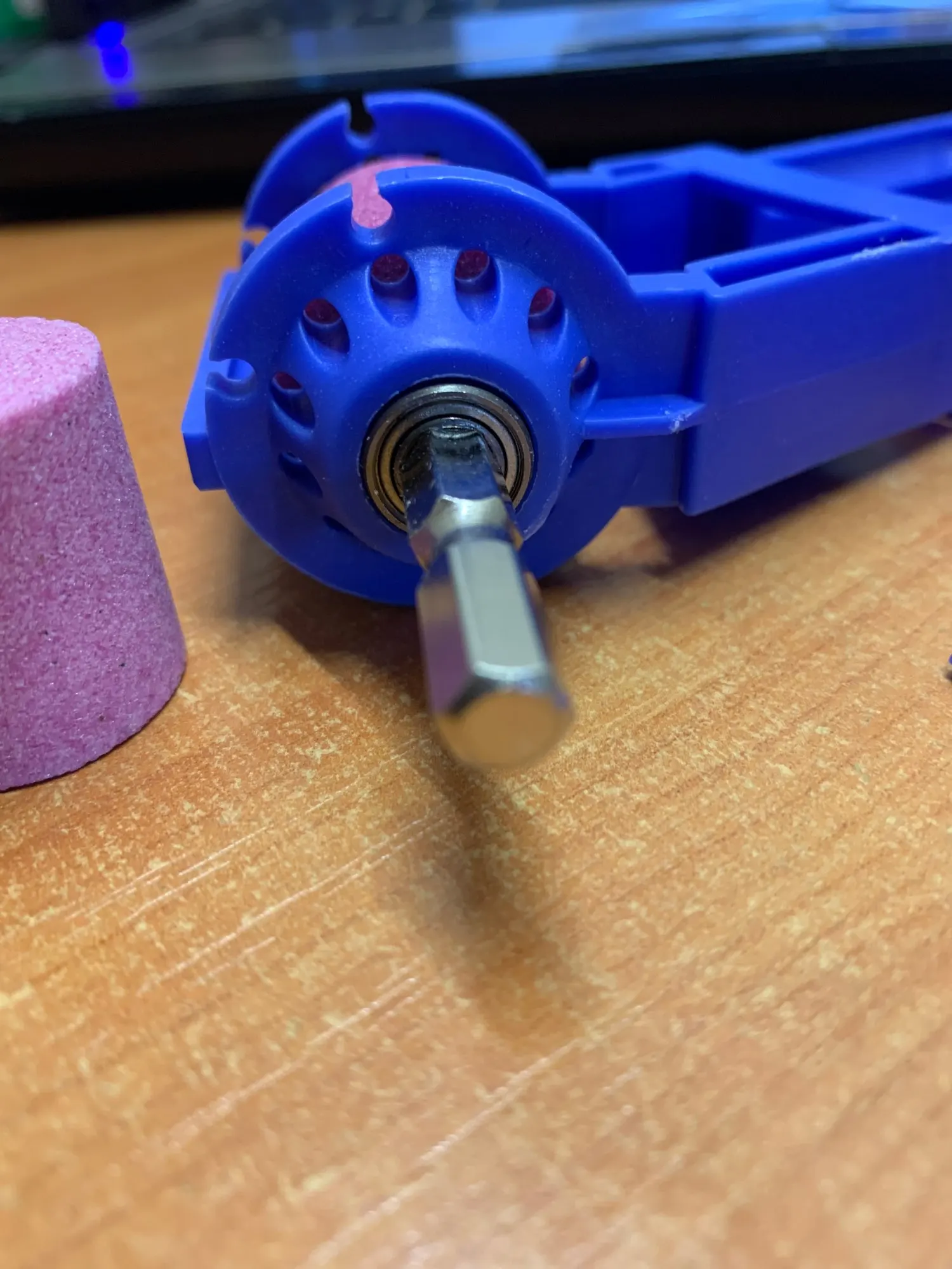 Меняет заточку свёрла по своему, отличительную от заводской, но отцу нравится))), сверлят затупленные свёрла однозначно лучше после заточки такой штукой