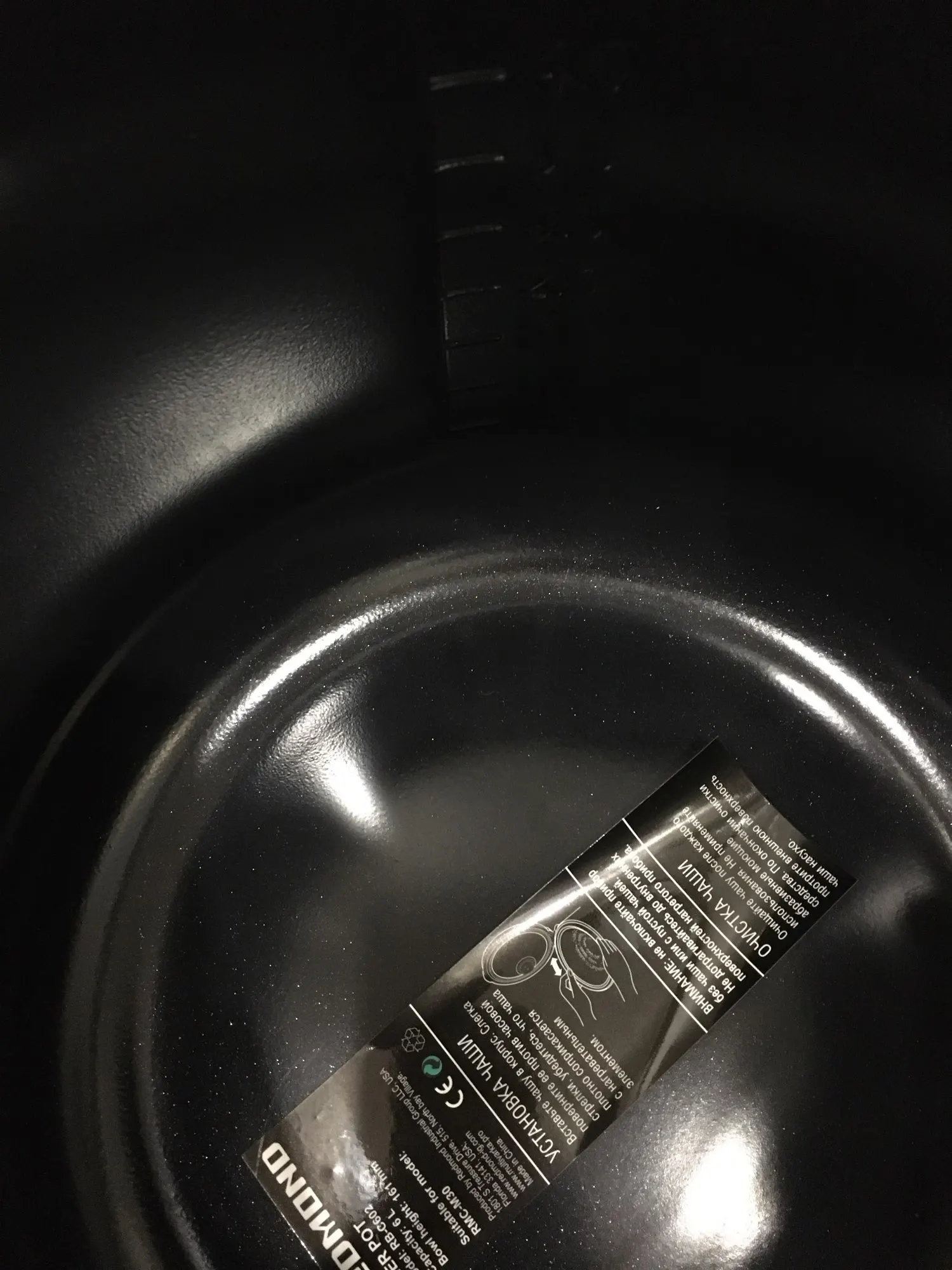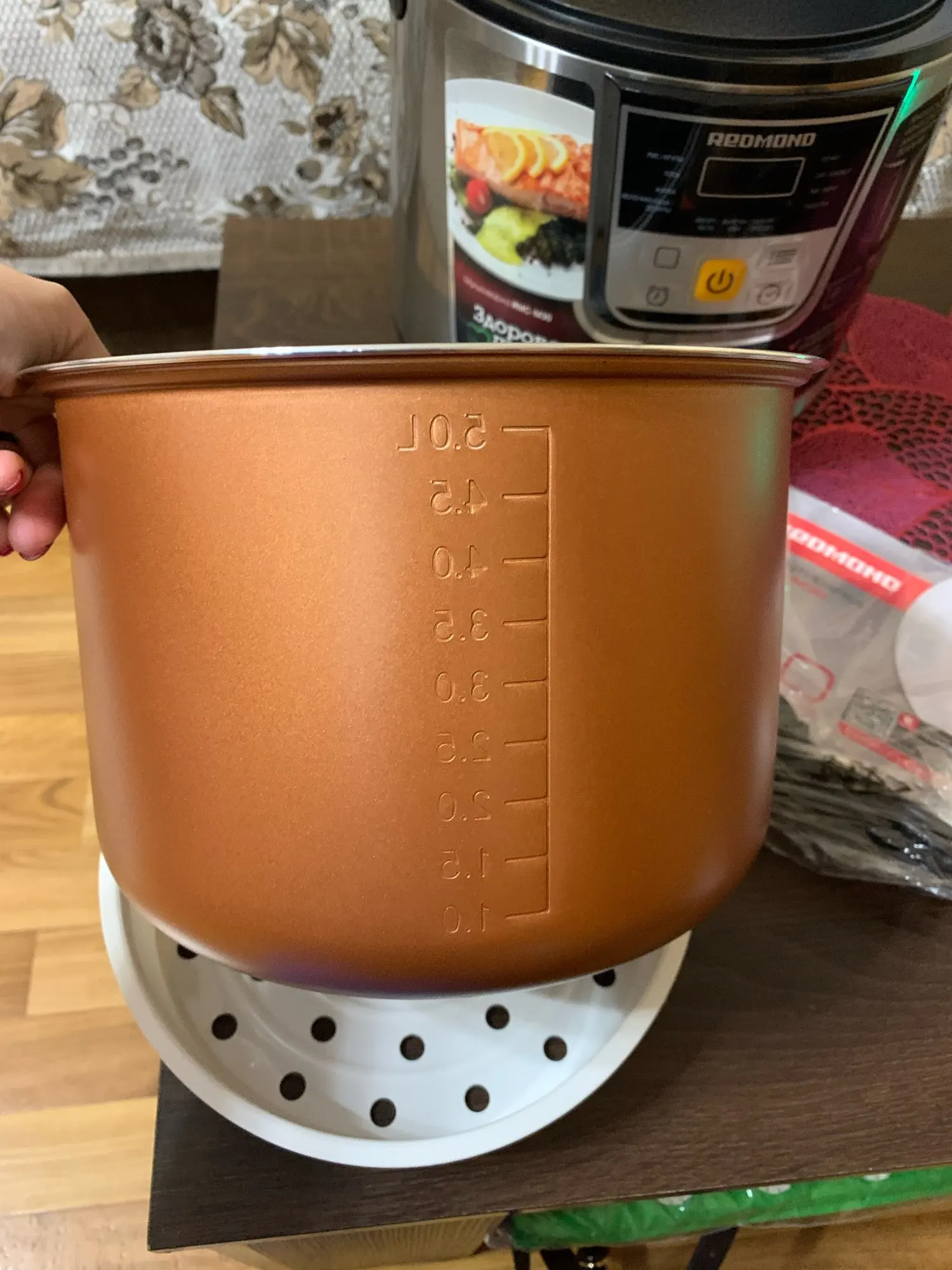 Спасибо продавцу, доставка 6 дней. Всё работает. Каша очень вкусная) готовили плов по рецепту из книги, воды нужно немного больше чем в рецепте, пристал немного рис, но не критично. На мультиварке написано объем 6л,а на чаше написано 5л.Не замеряла разницу.все устраивает, рекомендую.
