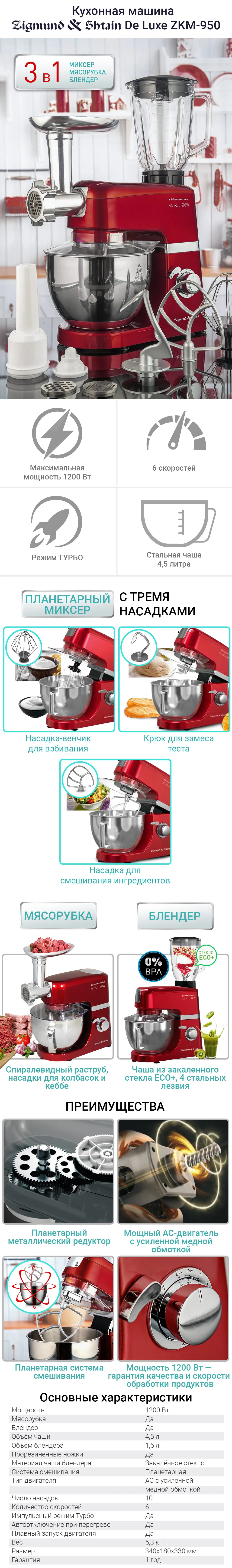 Кухонный комбайн Zigmund Shtain De Luxe ZKM-950