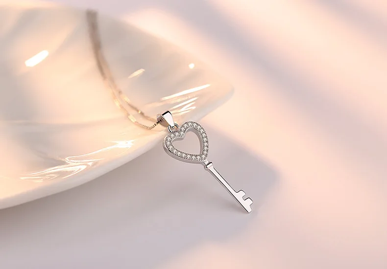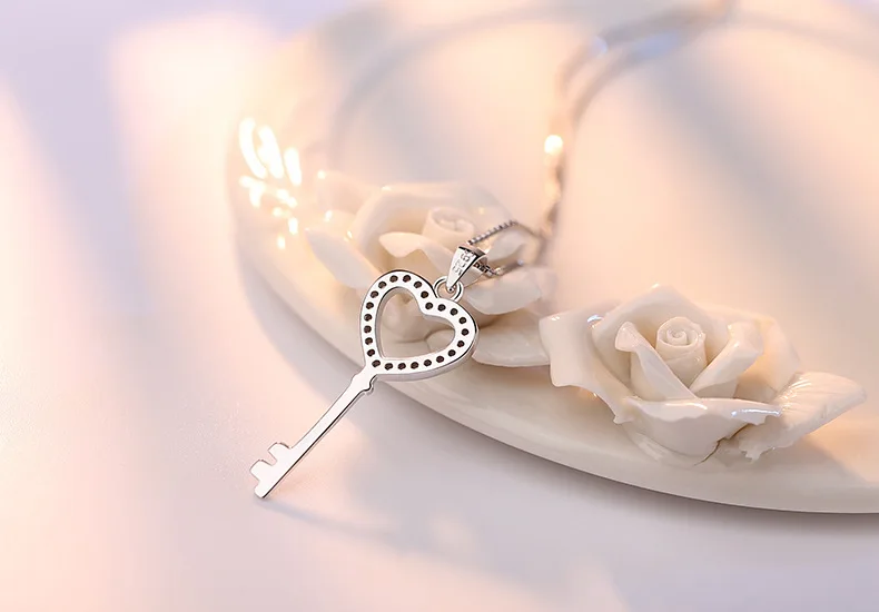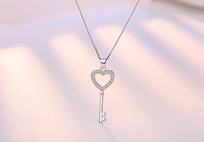 Женское Ожерелье из стерлингового серебра 925 пробы с кубическим цирконием, подвеска в форме сердца, цепочка 45 см, S-N74