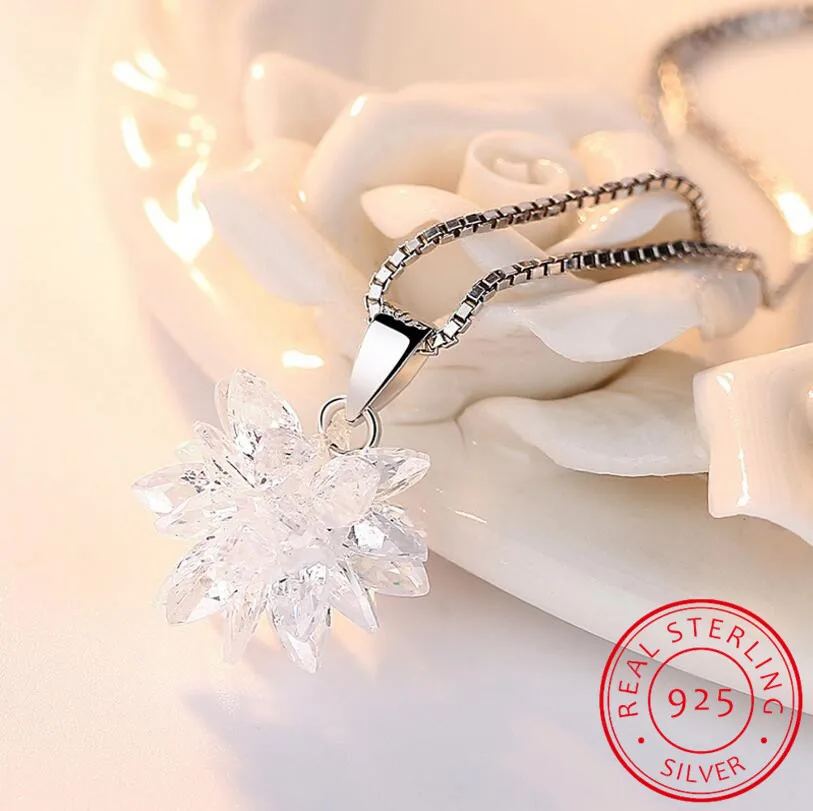 Женское ожерелье с подвеской в виде цветка лотоса из серебра 925 пробы