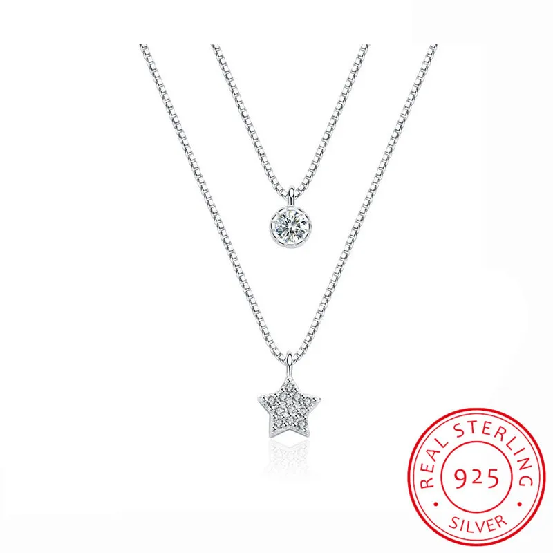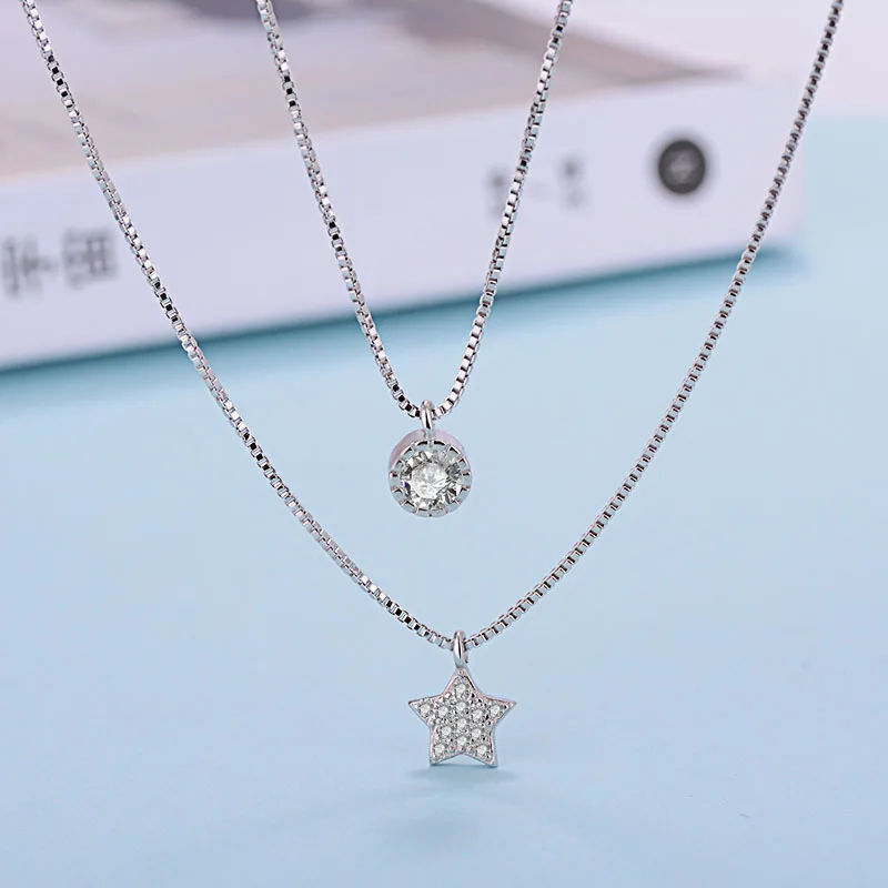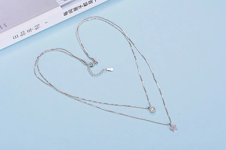 Женское Двухслойное серебряное ожерелье со звездами из циркония