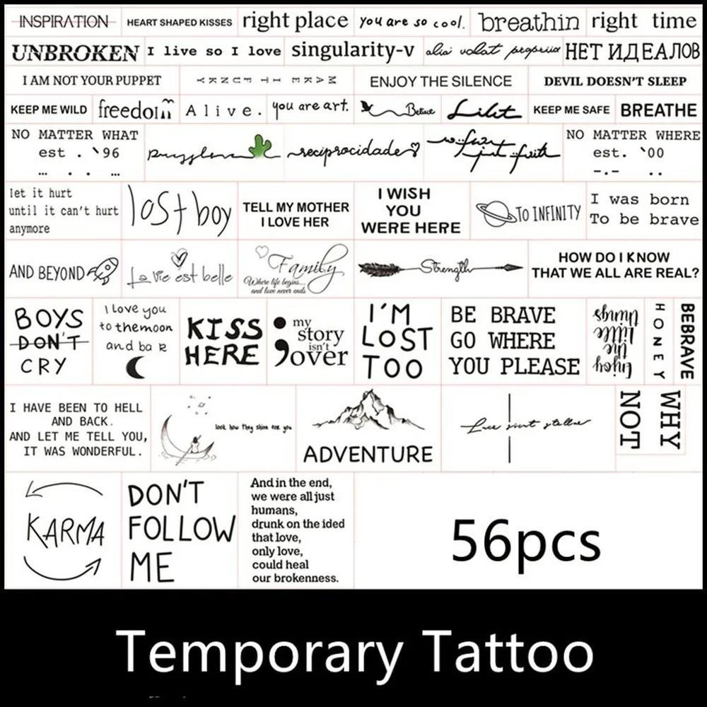 Тату-наклейки временные водостойкие для мужчин и женщин, наклейки на английские тату, 56 шт.пакет
