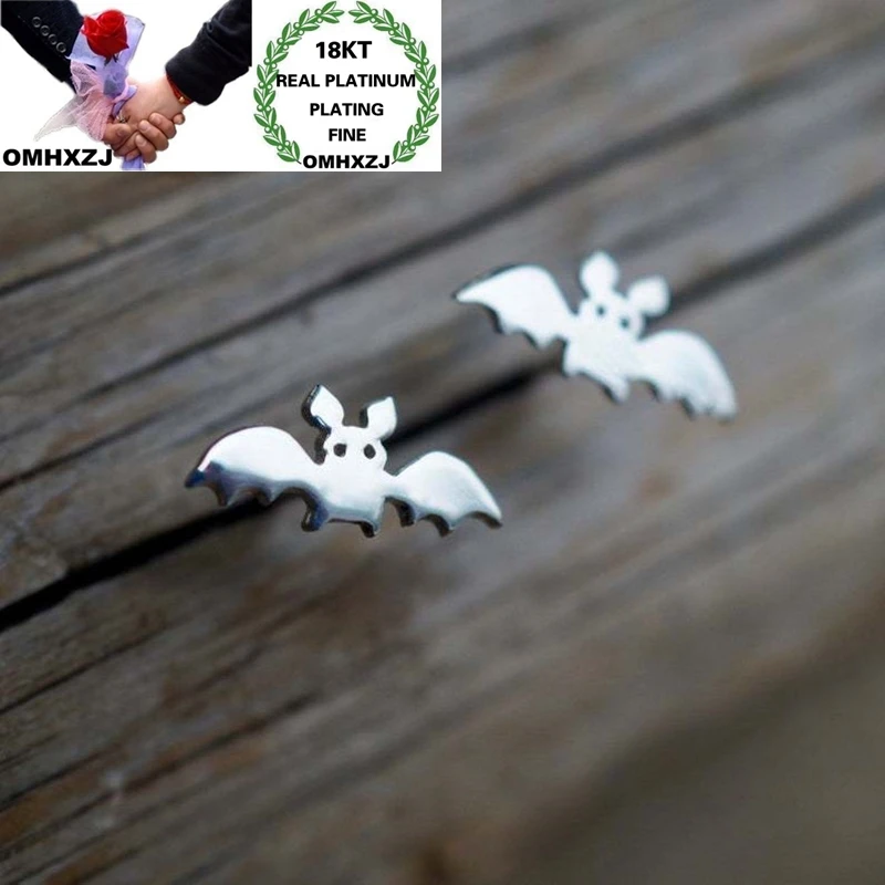 OMHXZJ ювелирные изделия оптом EA599 Европейская Изысканная мода для женщин и девушек подарок на день рождения свадьбу летучая мышь 18KT серьги-гвоздики из белого золота icon star icon star icon star icon star icon star