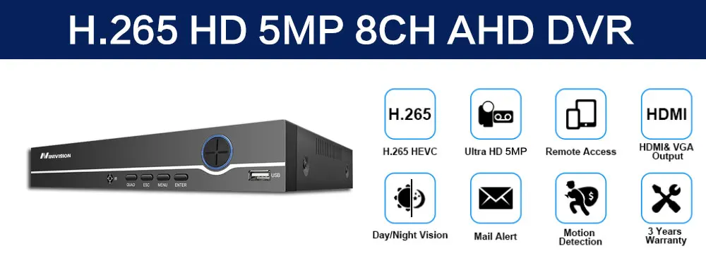 NINIVISION 8CH 5MP 6-в-1 AHD цифрового видео Регистраторы 2560*1920P Super HD DVR USB 3G WI-FI Обнаружение движения H265 облако P2P XMeye