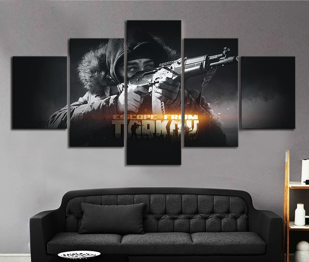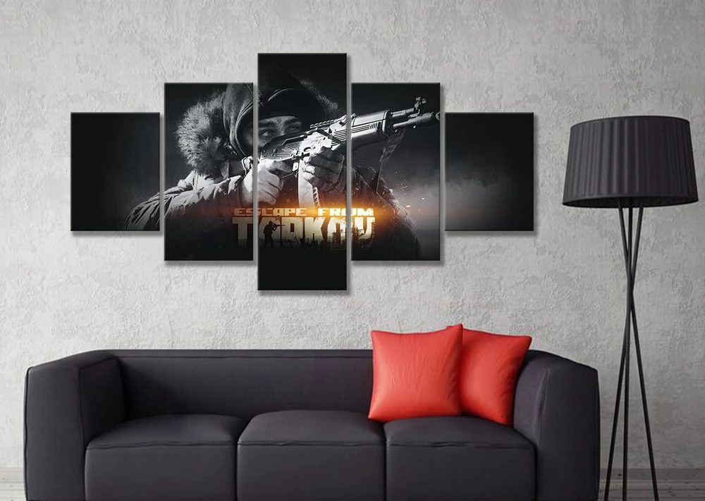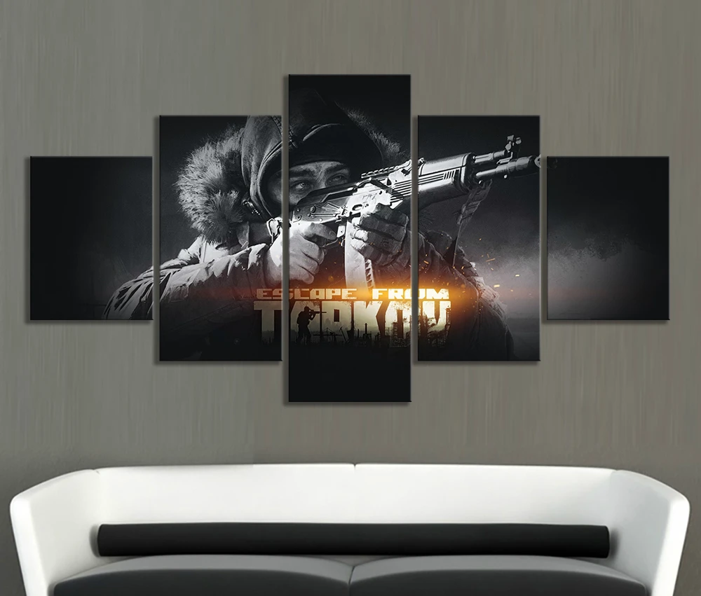 5 шт. Черно-Белая настенная живопись HD Solider с пистолетами, Настенная картина, Постер из игры тарков, холст, картины, декор для стен