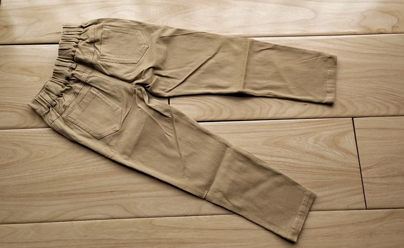 Материал тонкая джинса, очень похожи на школьные брюки. Сзади карманов нет, только спереди два. В поясе резинка -утяжка. Качество неплохое, но со временем начнут лосниться. Ребёнку на рост 146, об 78 и от 75 подошли, но без использования утяжки. Если параметры больше, в талии будут малы.