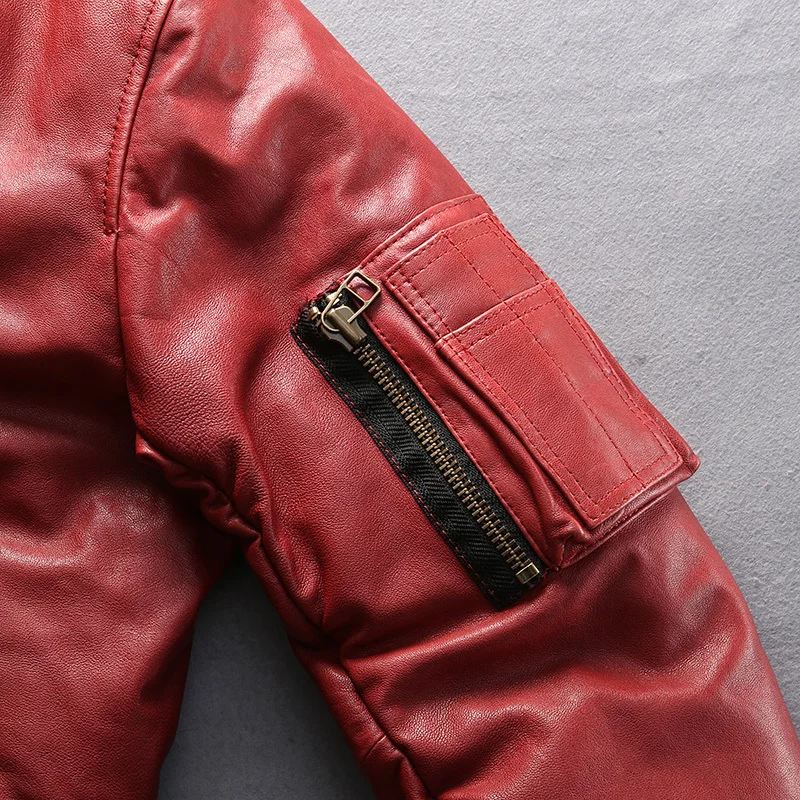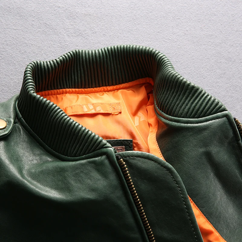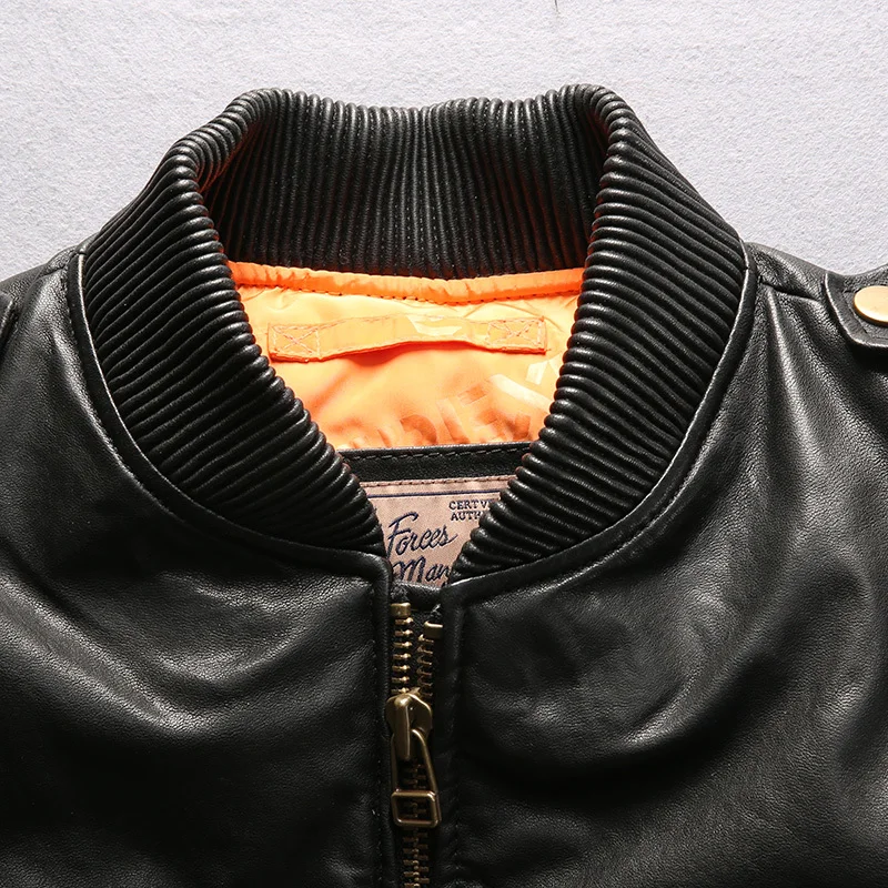 Мужской кожаный пуховик, Черная бейсбольная куртка из натуральной о...