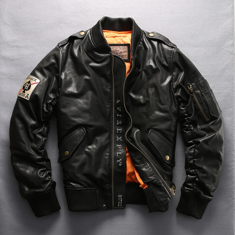 Avirex fly 2018 мужские пуховики из натуральной кожи кожаная куртка модная секция повседневное Пальто мотоциклетная байкерская куртка M-5XL