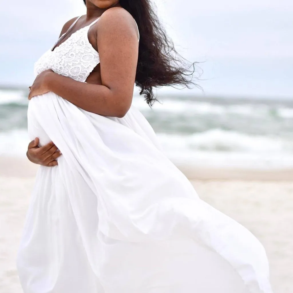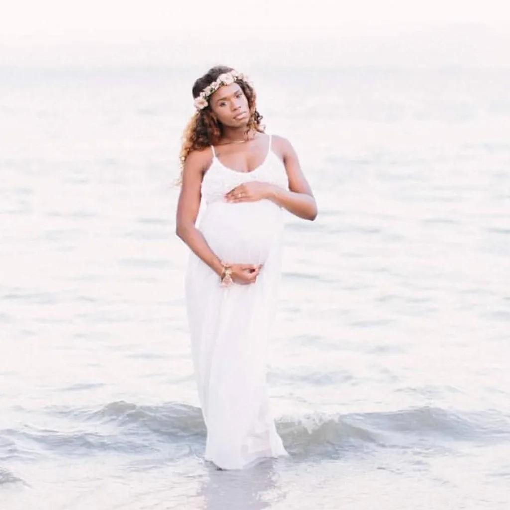 3. Кружевное платье для беременных очень красивое! Благодаря своему дизайну с открытыми плечами, это идеальный предмет для любого особого случая, например, для пляжа, фотосъемки, повседневной носки