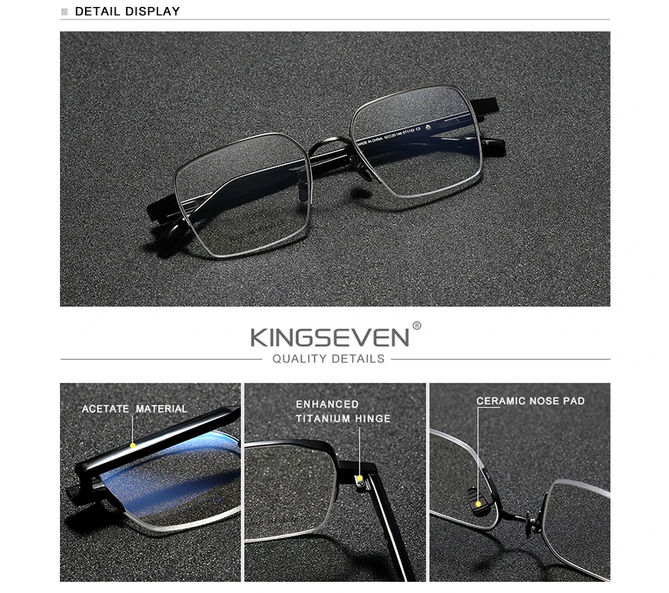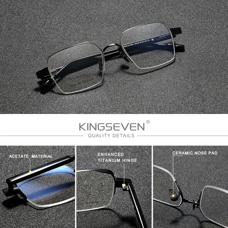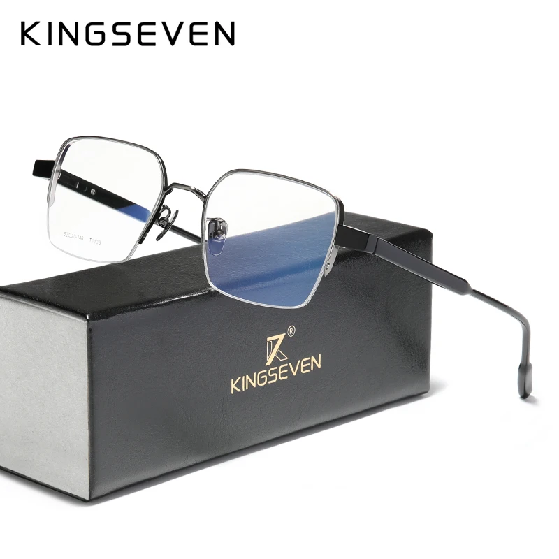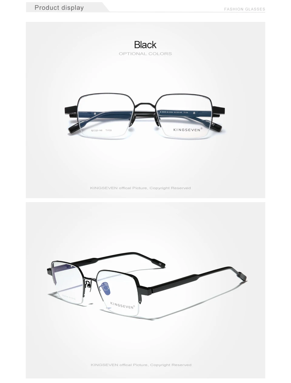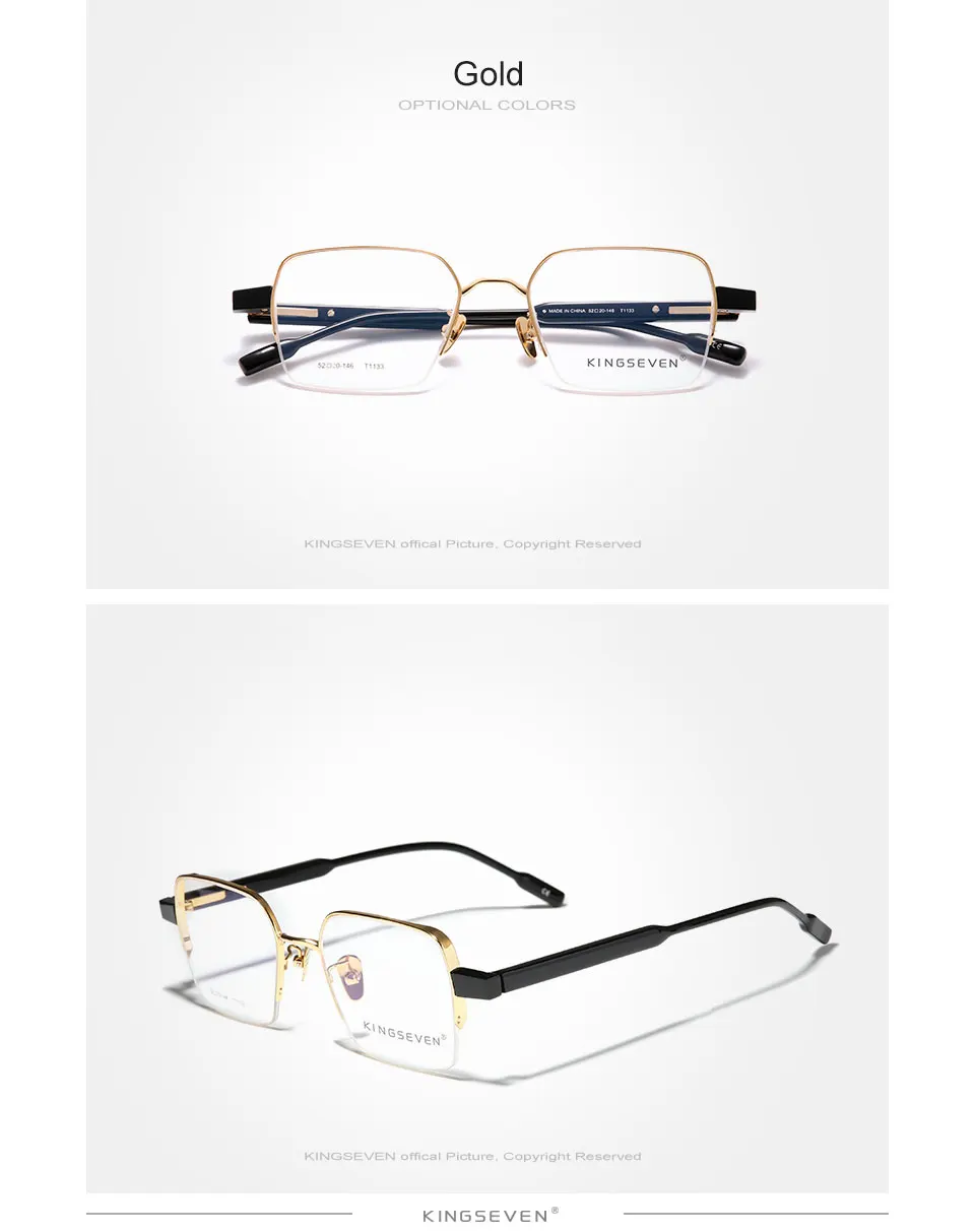 Мужские очки для коррекции зрения KINGSEVEN, черно-золотистые очки для коррекции зрения в полуоправе из чистого титана и ацетата, в металлической оправе, 2020