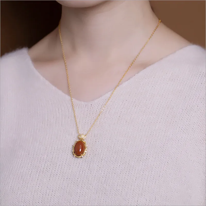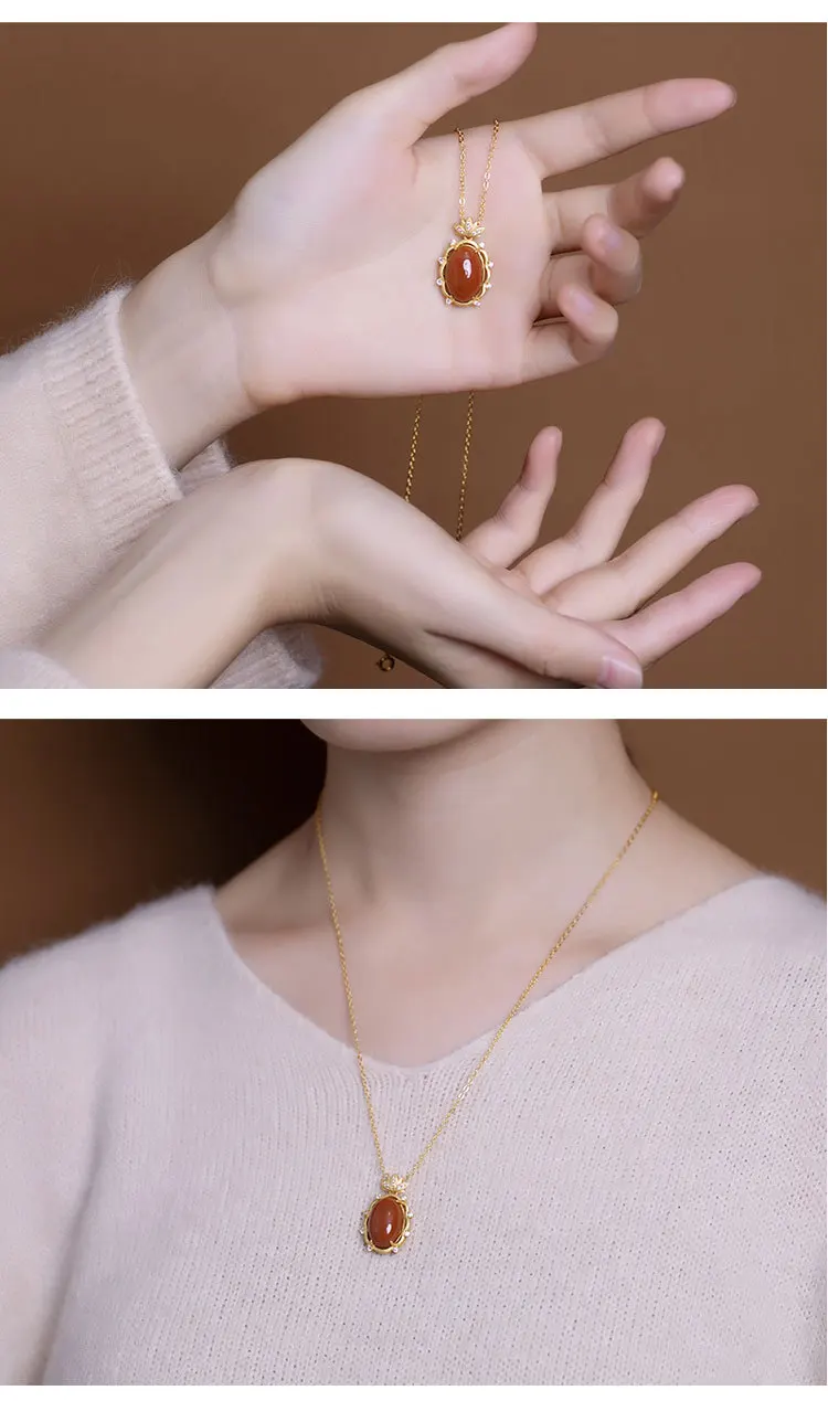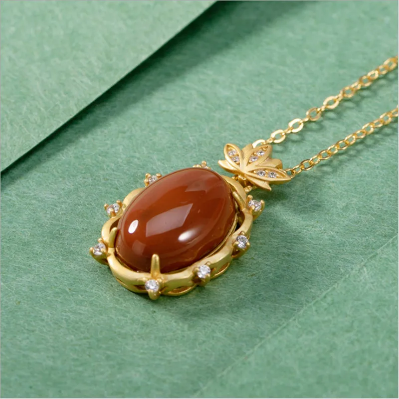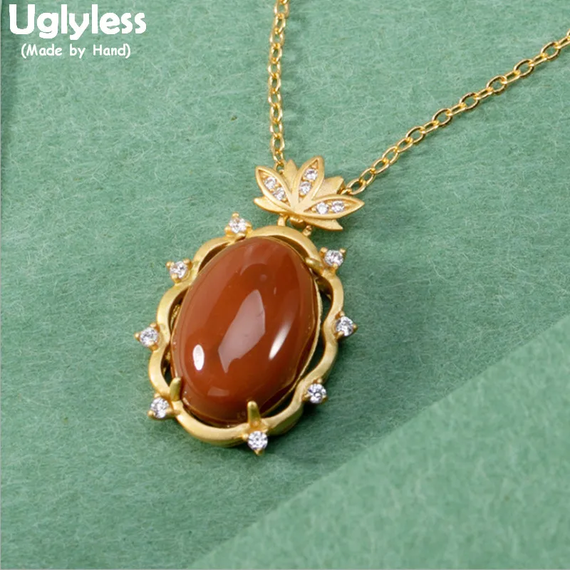 Uglyless золотые украшения в форме лотоса для женщин Овальные Подвески из агата ожерелья + цепочки с кристаллами в виде цветов лотоса ожерелья из серебра 925 пробы