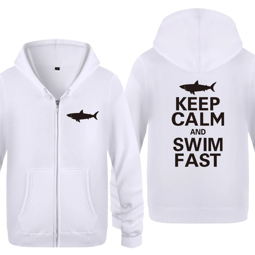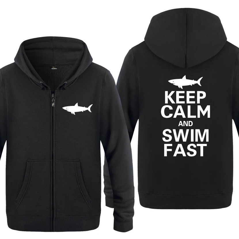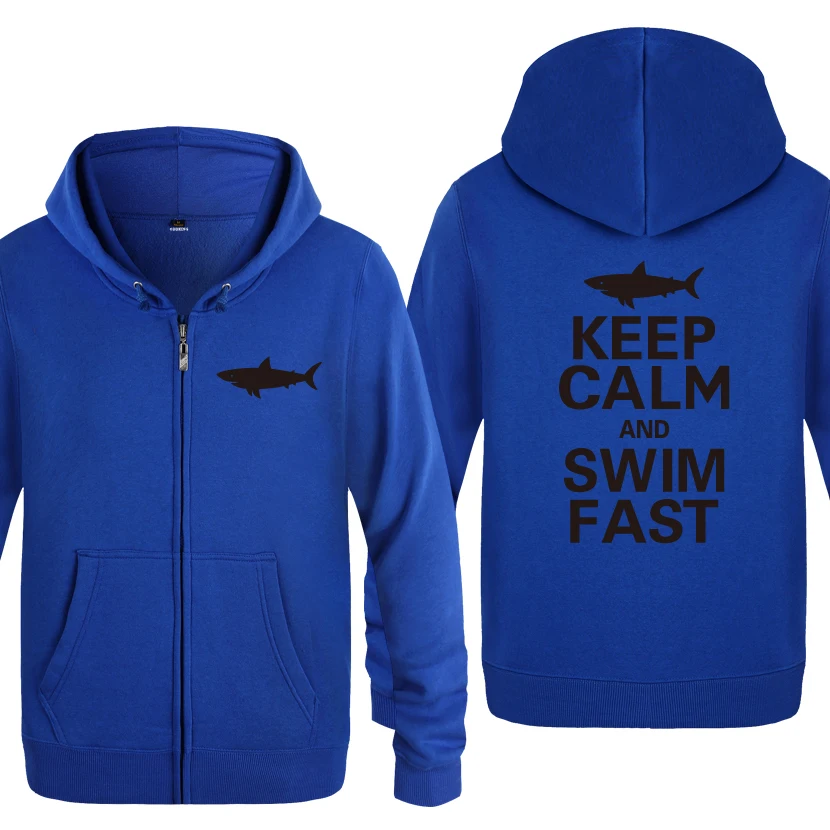 Новинка, забавные креативные Кофты с надписью Keep Calm And Swim, мужские модные куртки на молнии, флисовые толстовки с капюшоном, кардиганы